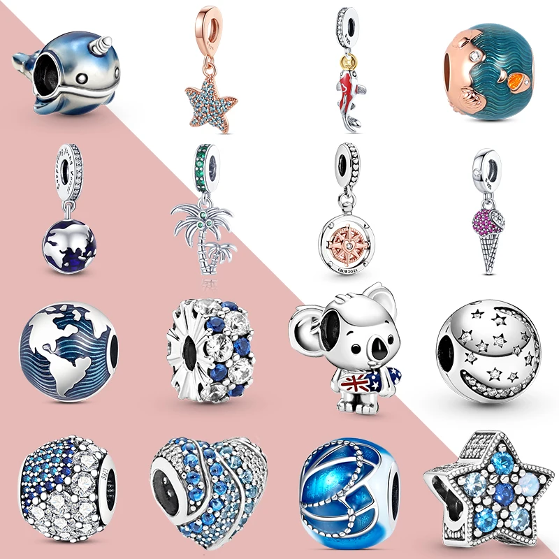 Лидер продаж, серебристые цветные летние бусины серии океан, синие ...