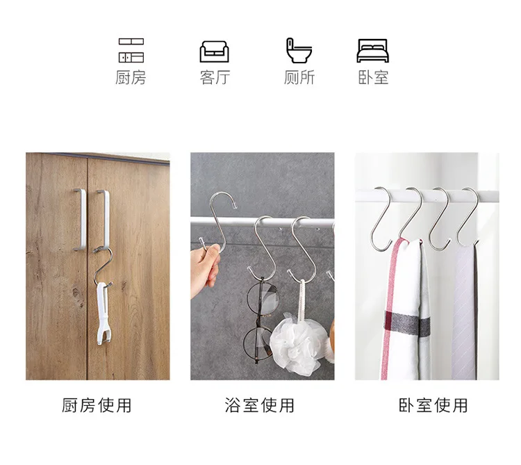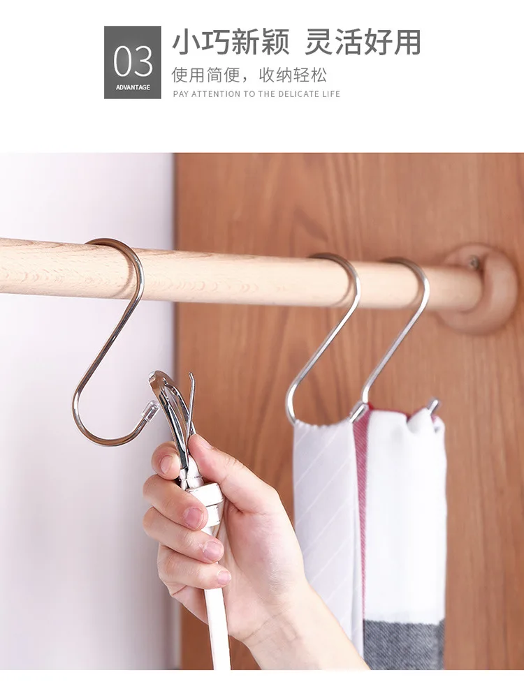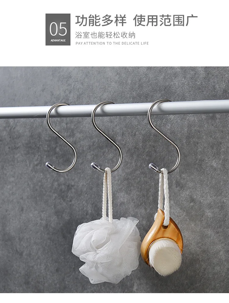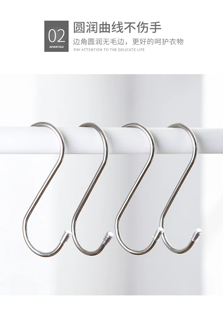 Круглый S-образный крючок из нержавеющей стали, многофункциональные перила для кухни, спальни, S-образные крючки, подвесные крючки для хранения
