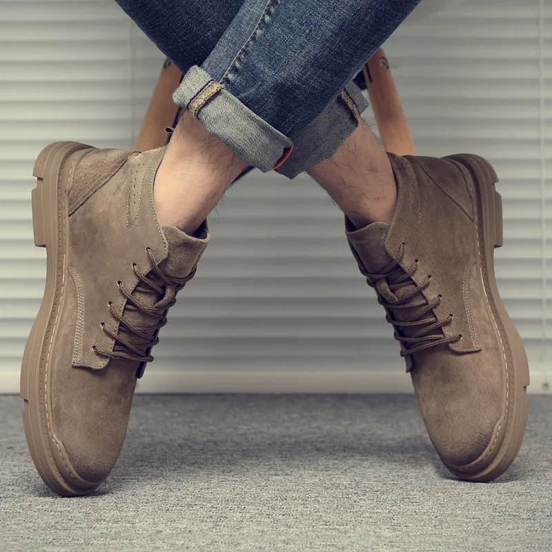 Мужские кожаные ботинки на шнуровке, с плюшевой подкладкой, повседневные, зимние, 2021