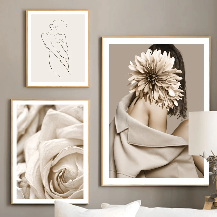 Женские изгибы, ручная линия, Геометрическая абстрактная настенная ...