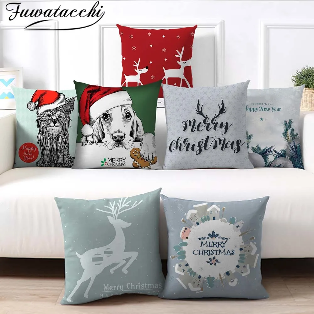 Fuwatacchi милый мультяшный принт собаки Рождественский Чехол на подушку крышка подушки оленя для дома диван Автомобильная Подушка Чехол Декоративная Подушка ЧехолПримечание:
