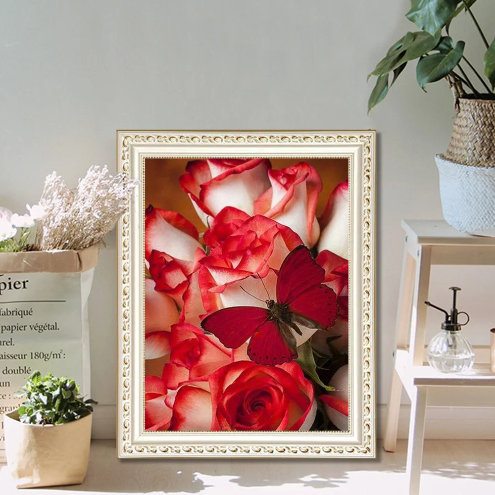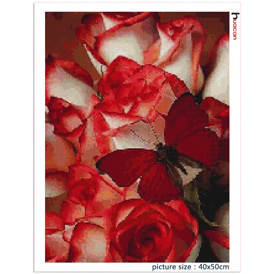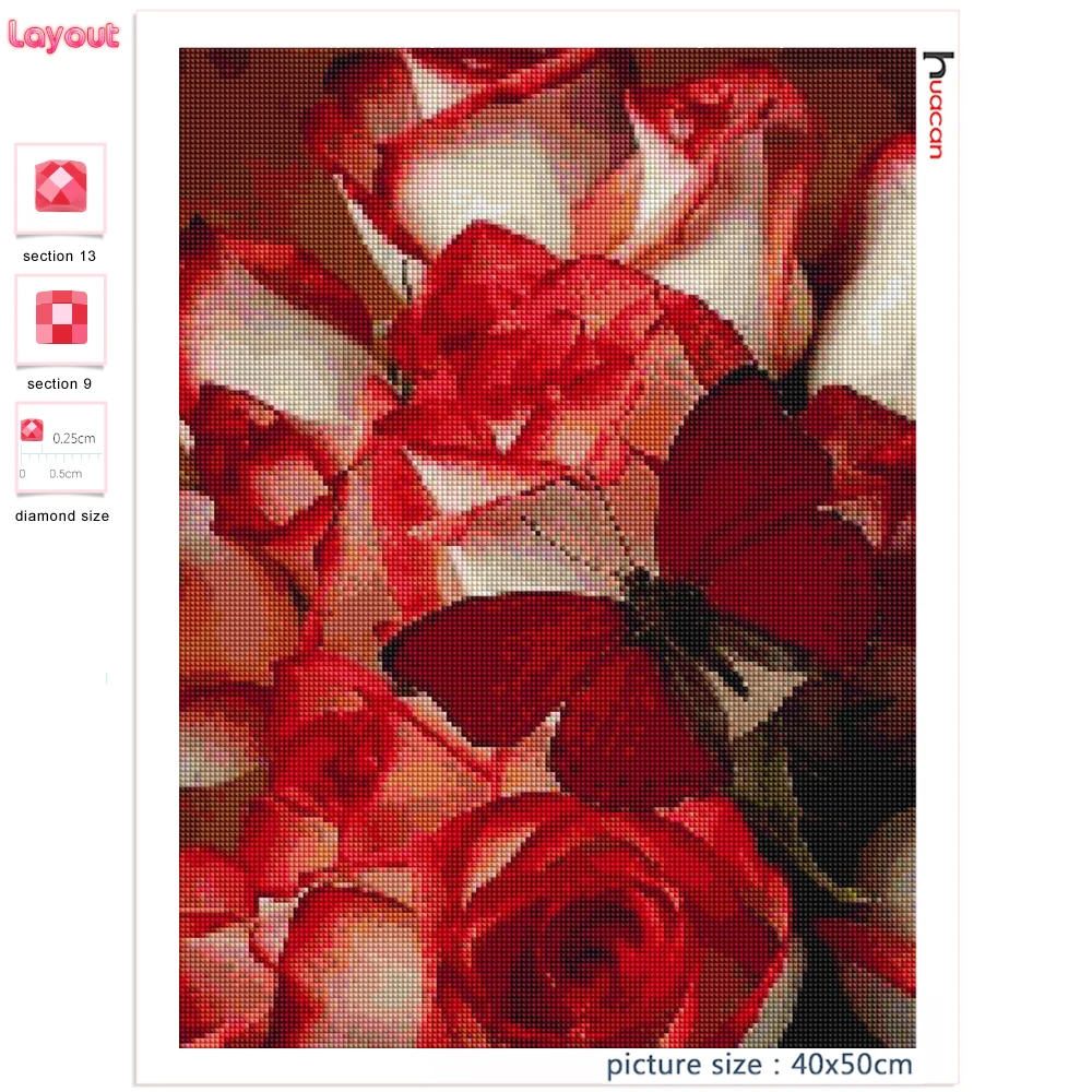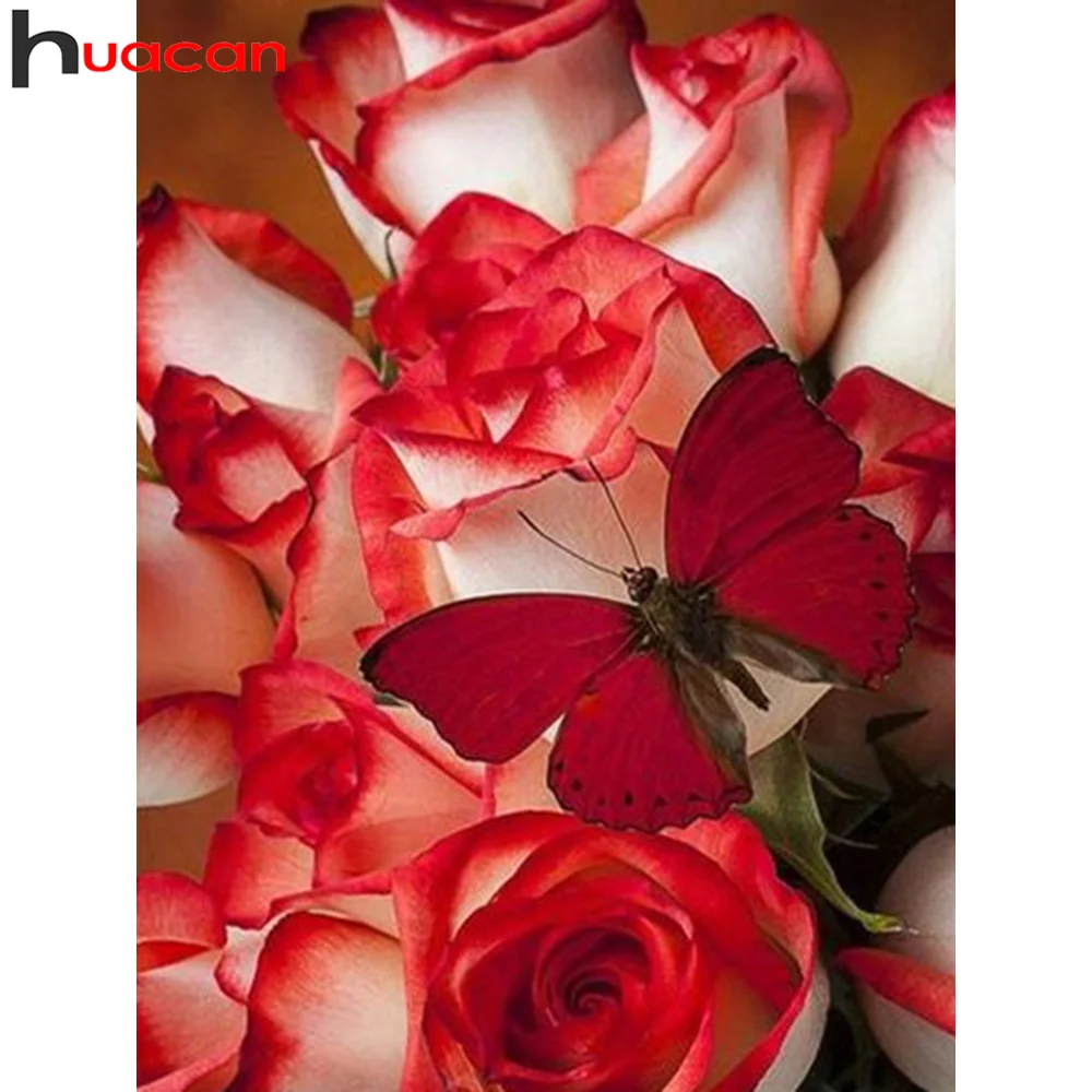 Huacan полноформатнаякруглая алмазная живопись, роза, алмазная вышивка, мозаика, красная бабочка, Цветочная вышивка крестиком, домашний декор