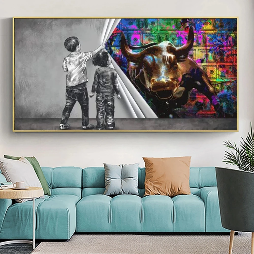 Граффити Бэнкси, искусство за занавеской, картины на холсте, постеры и принты, настенные картины для гостиной, домашний декор