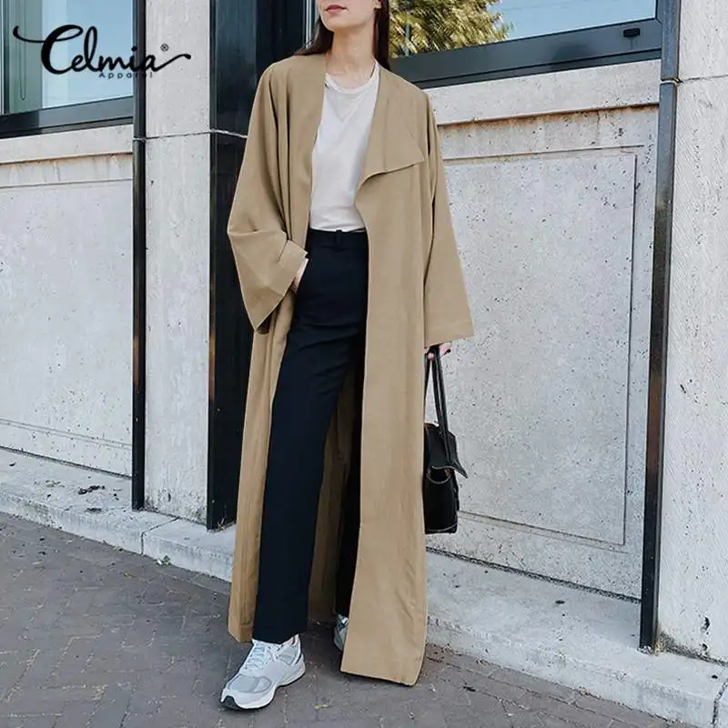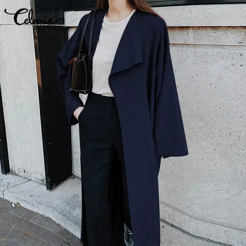 Женская ветровка Celmia, длинный кардиган в Корейском стиле, мешков...