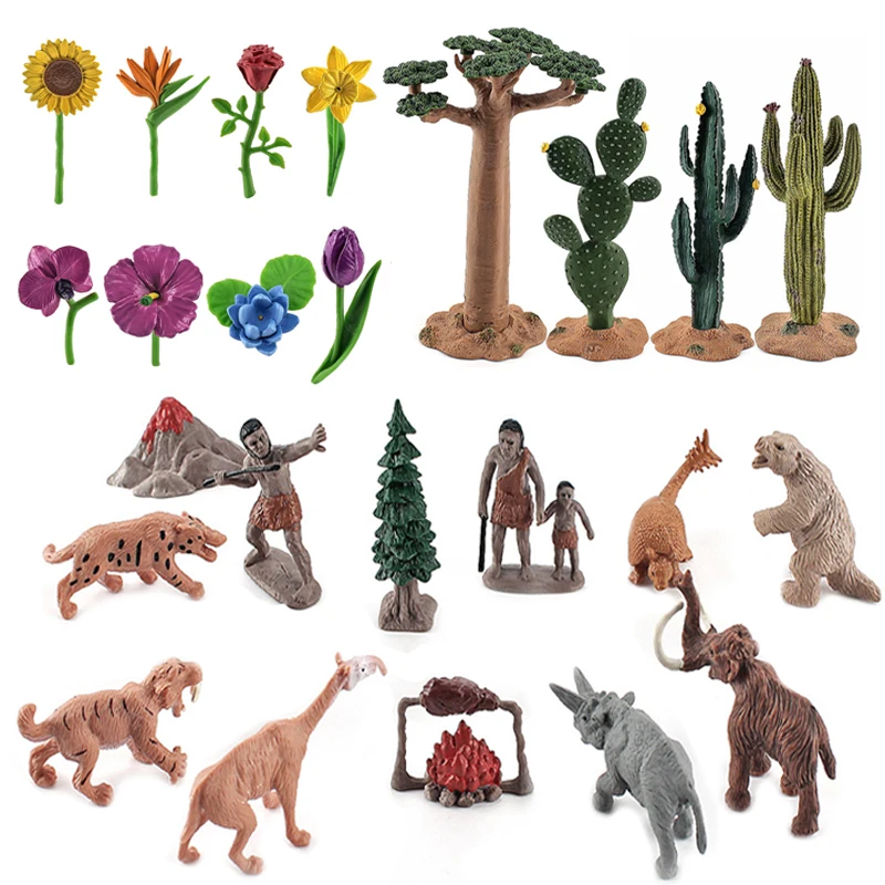 Мини-фигурки Детские экшн-фигурки, примитивные животные, модель племени, цветы, растения, кактус, баобаб, обучающие игрушки