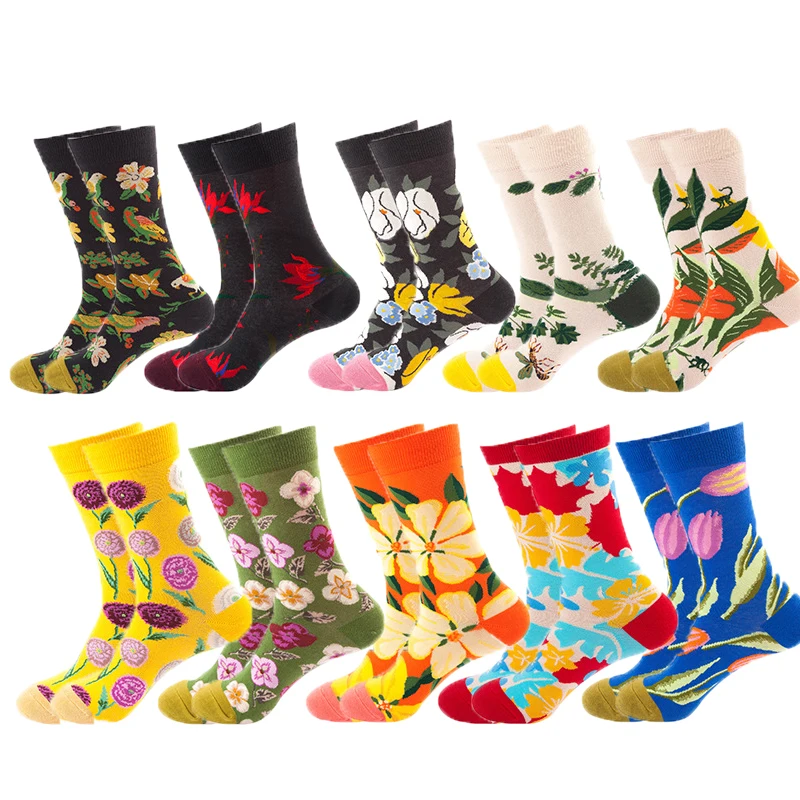 1 пара мужских носков из чесаного хлопка, Мультяшные животные, птиц...