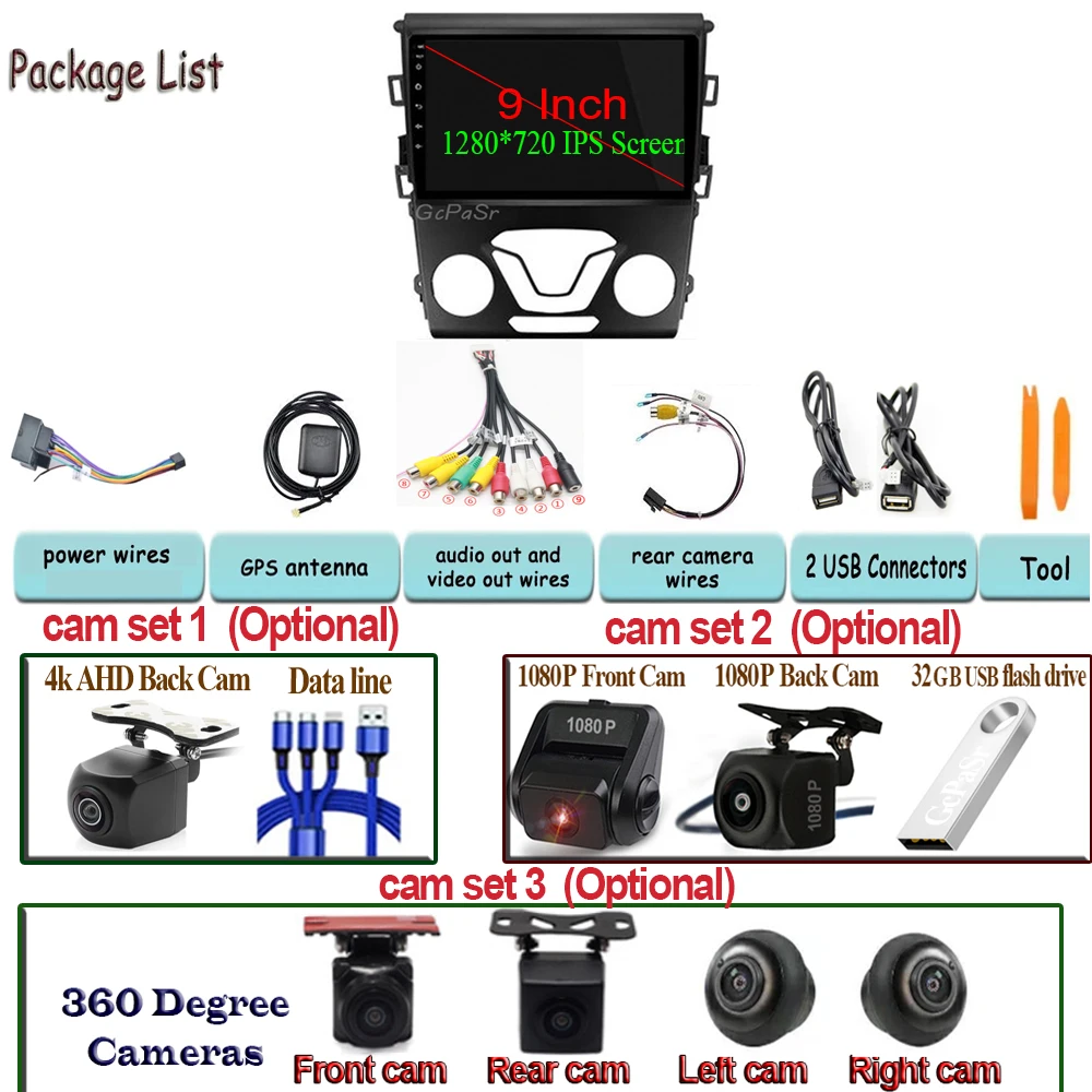 Автомобильный стерео Мультимедийный проигрыватель 360, камера для H...