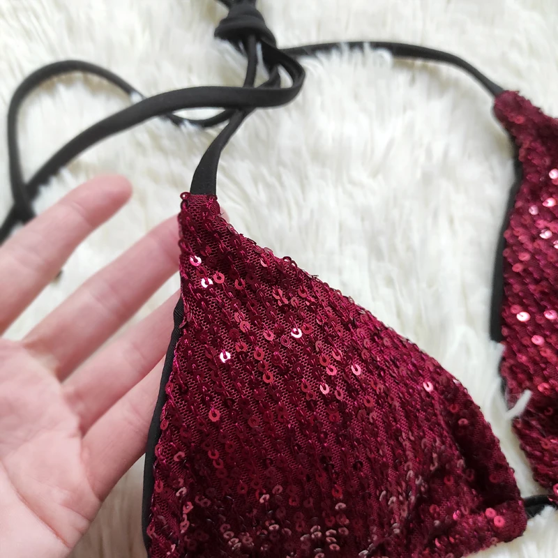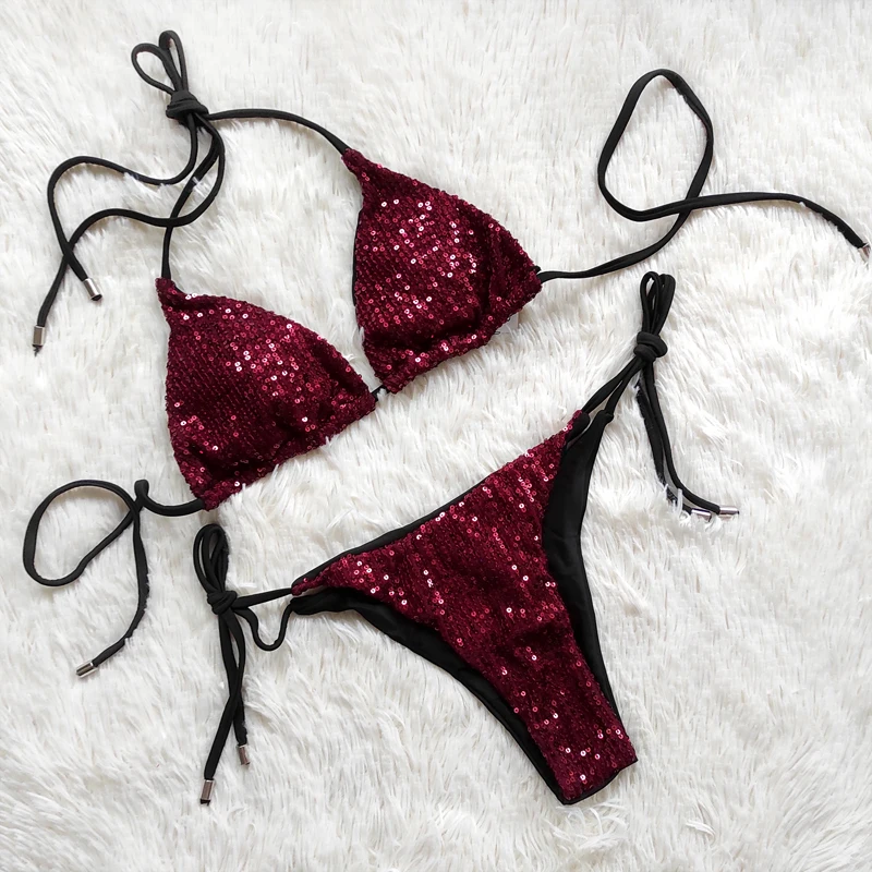 Женский бандажный купальник из двух предметов, Новое поступление лета 2022, сексуальный купальник, комплект бикини с блестками, купальный костюм с пуш-ап, пляжная одежда