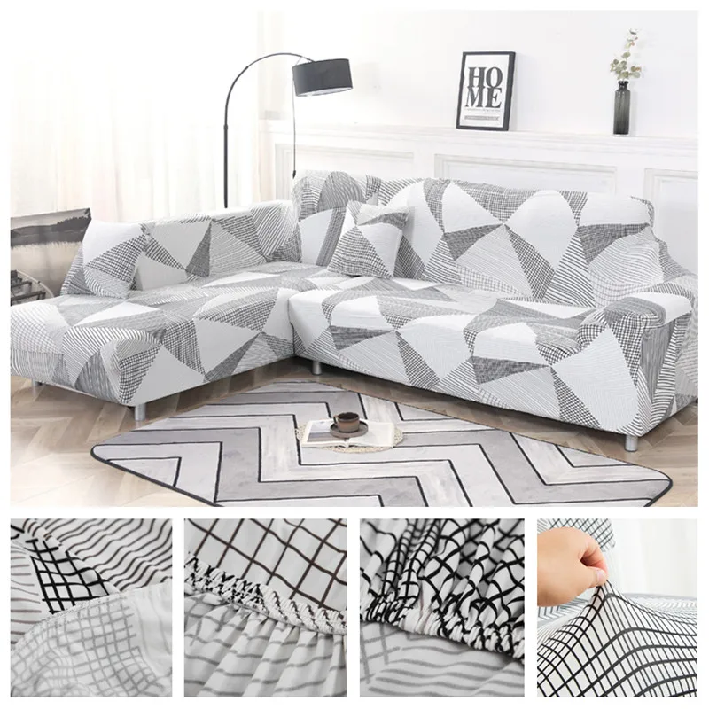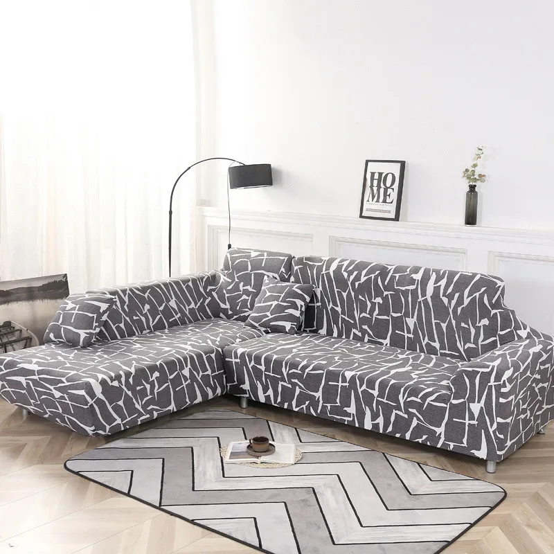 Чехол для дивана L-образной формы, эластичное покрытие из спандекса, с принтом, защита от пыли, для гостиной