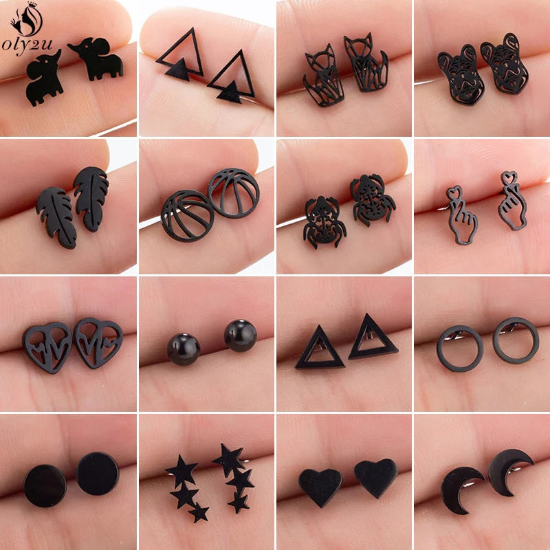 Несколько черных сережек из нержавеющей стали геометрические женски...