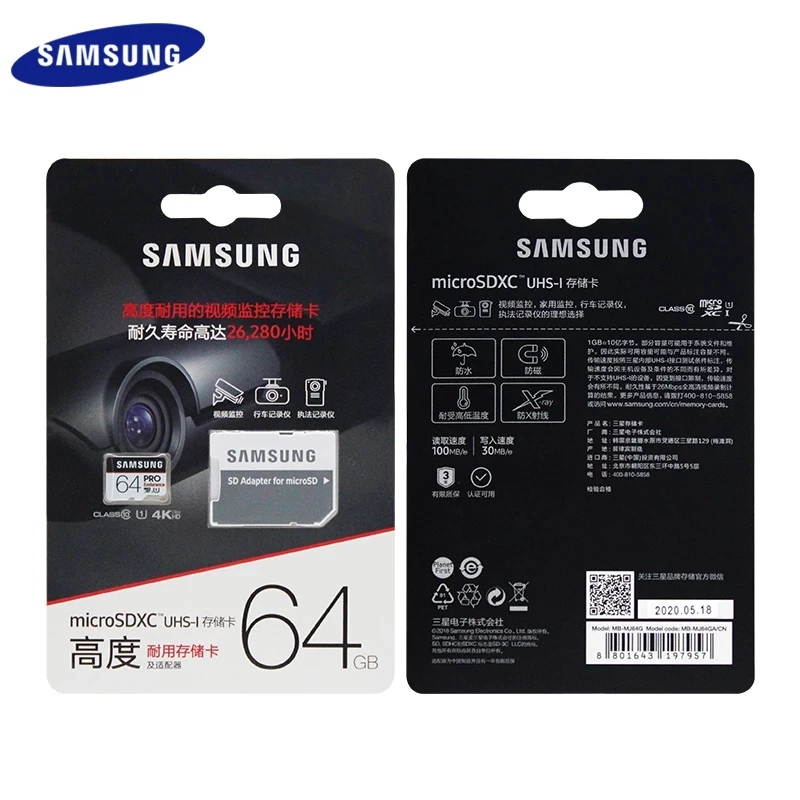 Карта памяти Micro SD SAMSUNG PRO, класс 10, 100, МБс., 128 ГБ, 64 ГБ, SDXC, SDHC, 32 ГБ
