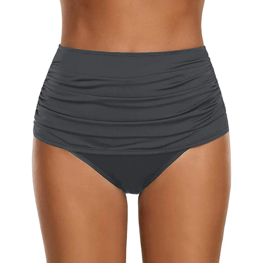 Бикини с завышенной талией, плавки, шорты, плиссированный белый купальный костюм, трусики танкини, Женская юбка для плавания, купальный костюм, трусики