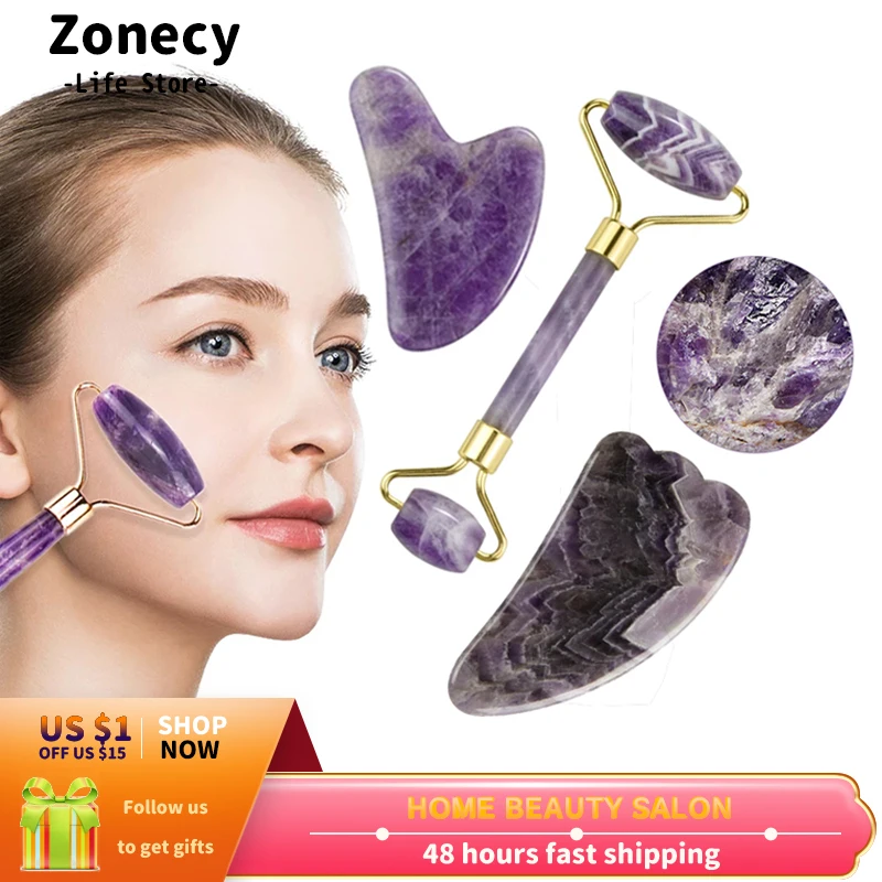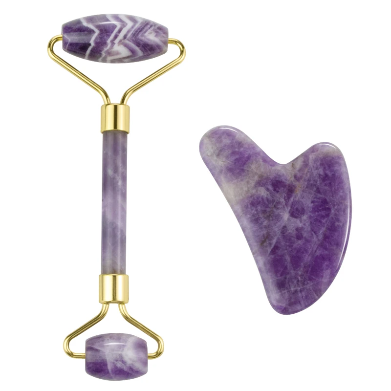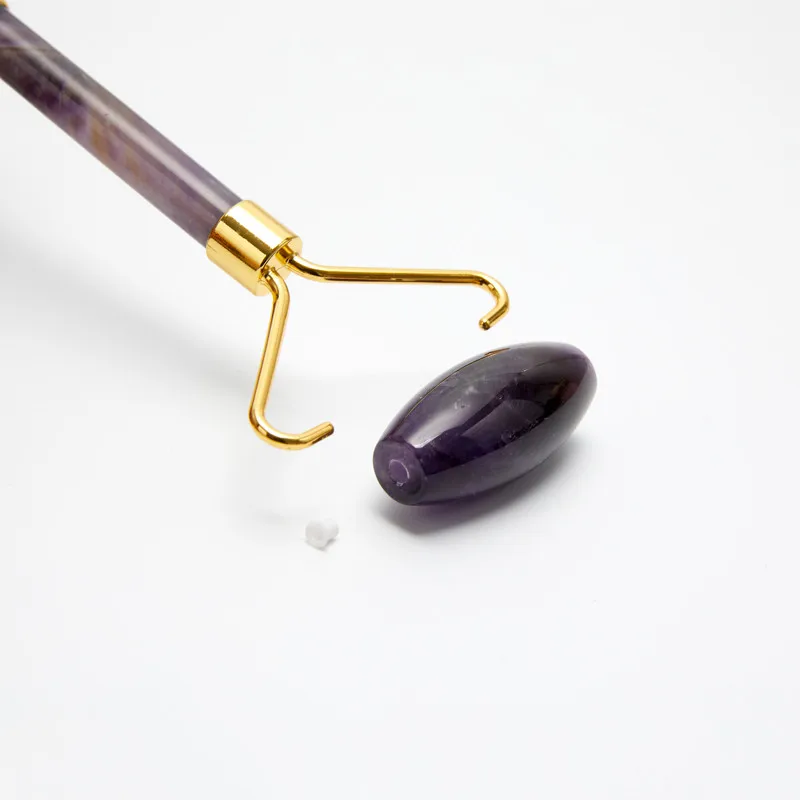 Аметист нефритовый ролик-массажер для лица Натуральный подъемник Gua Sha скребок для доски Guache камень для похудения Тонкий подбородок, шея красота уход за кожей