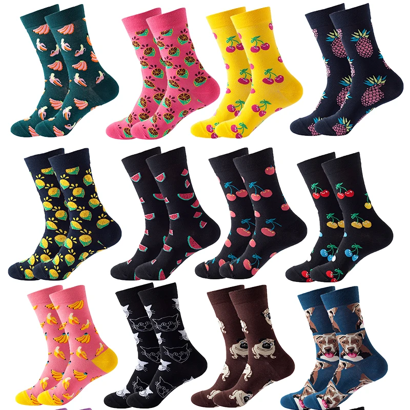 1 пара мужских носков из чесаного хлопка, Мультяшные животные, птиц...