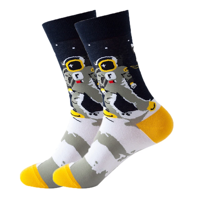 Носки мужские, женские, хлопковые, разноцветные, с рисунком космона...