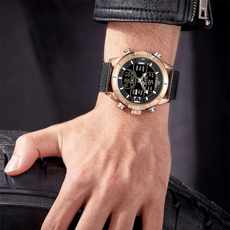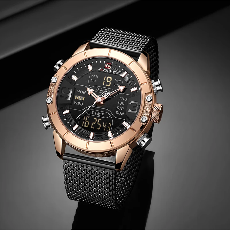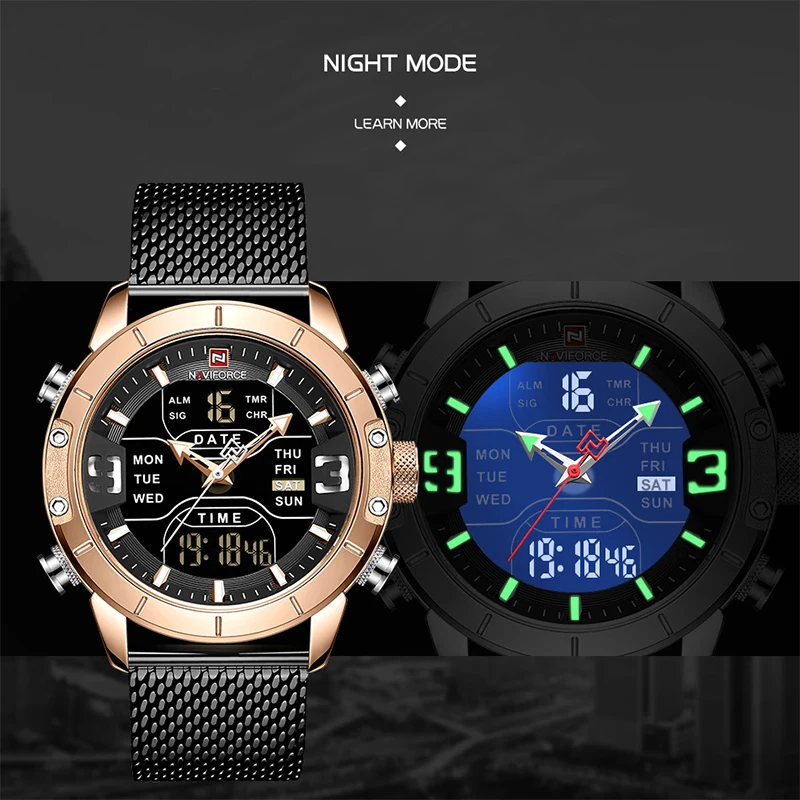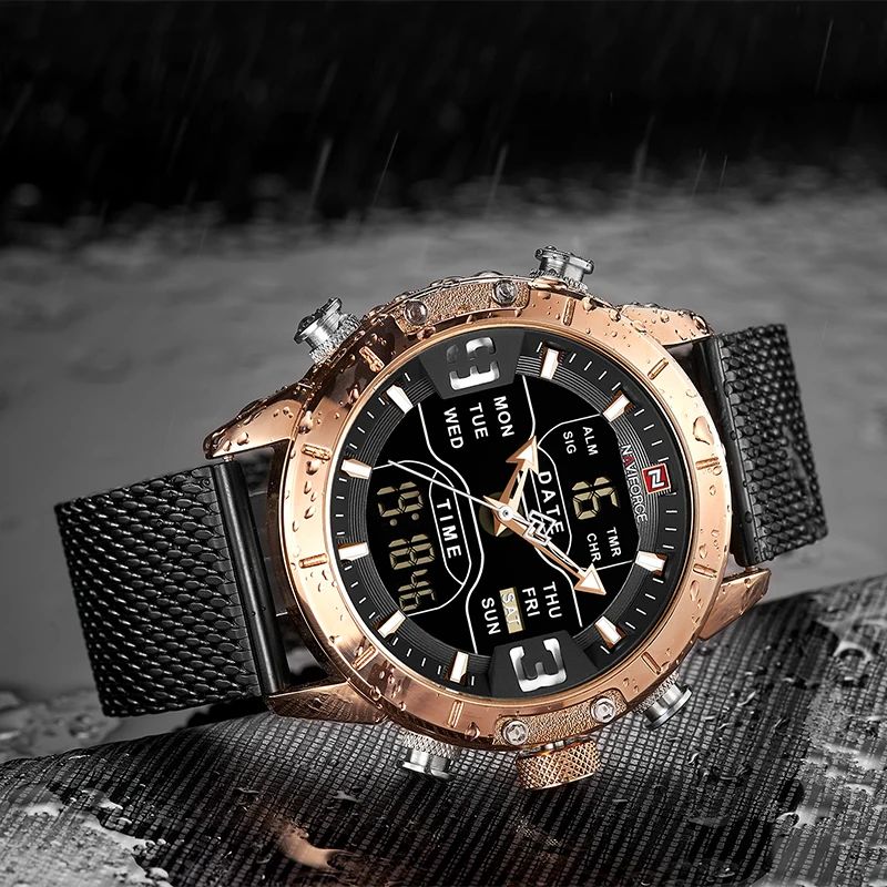 NAVIFORCE мужские часы Топ бренд класса люкс двойной дисплей светод...