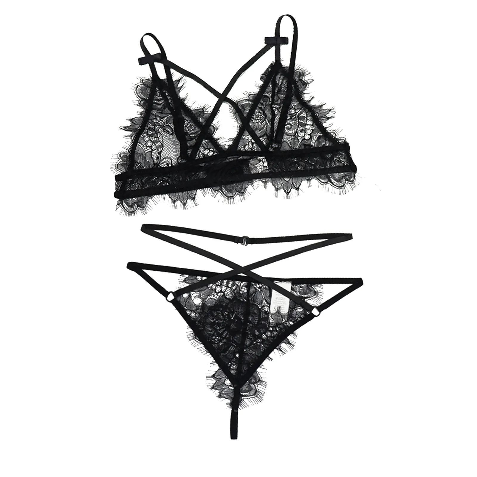 Женское Нижнее Белье, прозрачное соблазнительное Белье с перекрестными лямками и ресницами, сексуальное Нижнее Белье для женщин, сексуальный комплект с бюстгальтером, Нижнее Белье