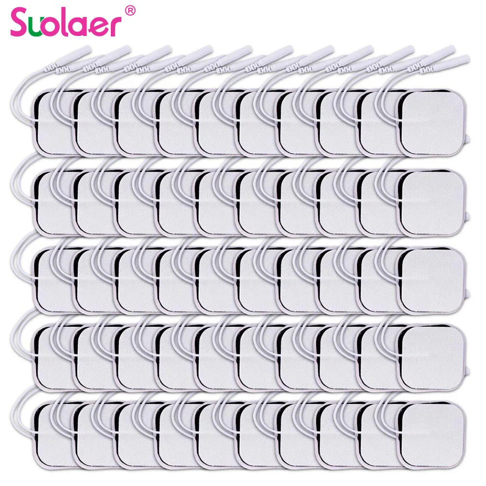 Электродные накладки для стимулятора мышц, 4 х4 см, самоклеющиеся Сменные накладки из нетканого материала для десятки цифровых терапевтических аппаратов, штекер 2 мм