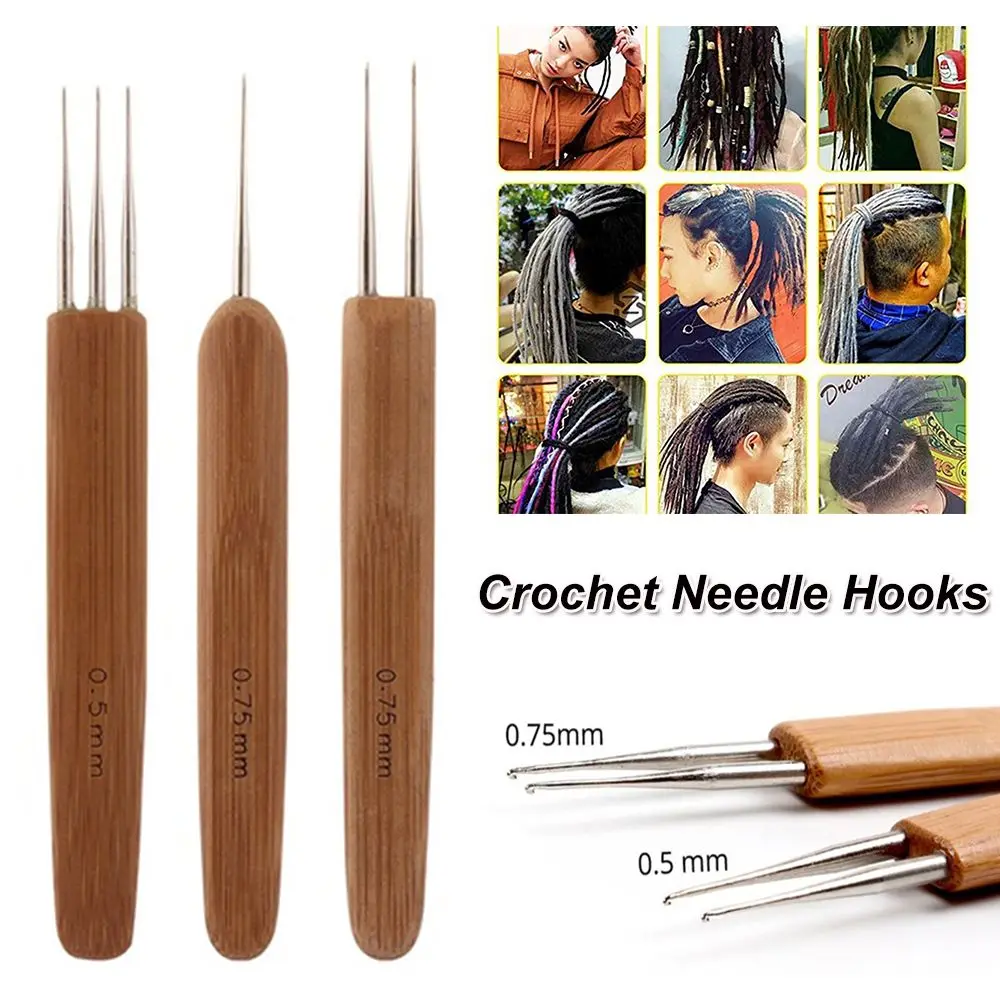 Одна двойная Тройная вязальная игла для дредов, Бамбуковая ручка, м...