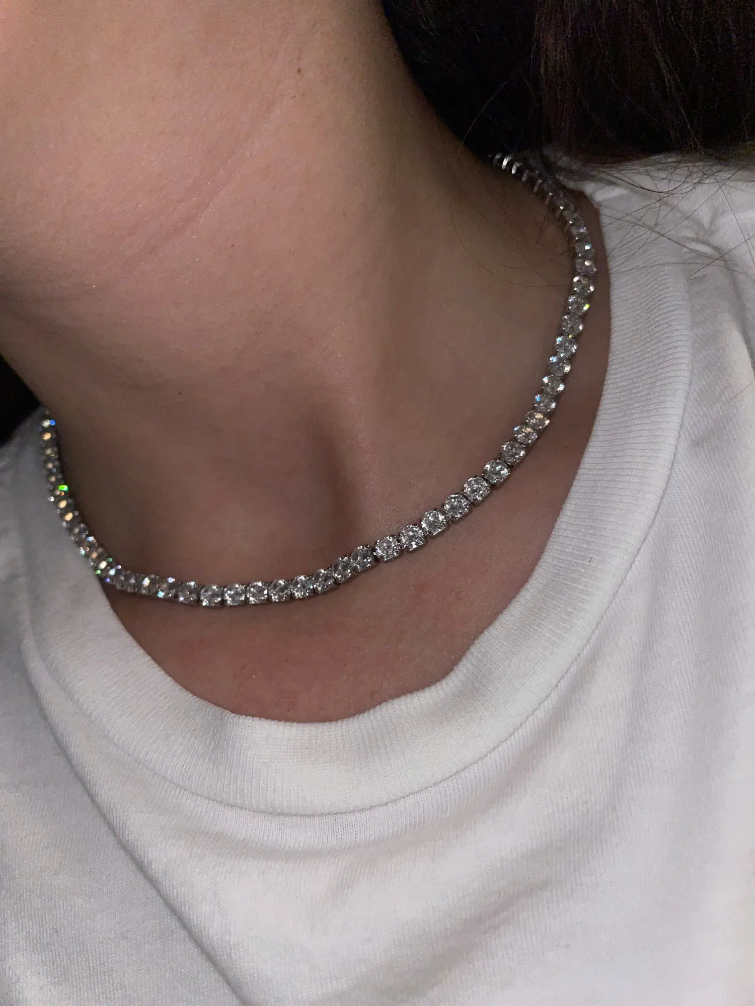 Достаточно быстрая доставка. Очень красивая цепочка- ожерелье. Можно и на выход, можно и на каждый день. Камушки с небольшими просветами, отлично блестят. Размер можно немного регулировать. В носке, если сделать свободно на шее, чаще всего камни смотрят вниз(( Если плотно застегнуть на шее, то сидит как надо. Ну в общем для такой формы это ожидаемо. На фото с такой же цепочкой из нержавейки и меньшего размера камней. Пришло в коробочке. В общем, выглядит отлично. Покупкой довольна.