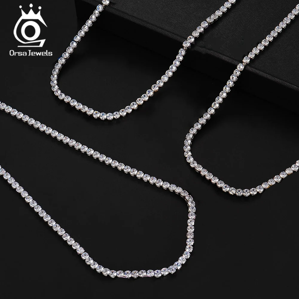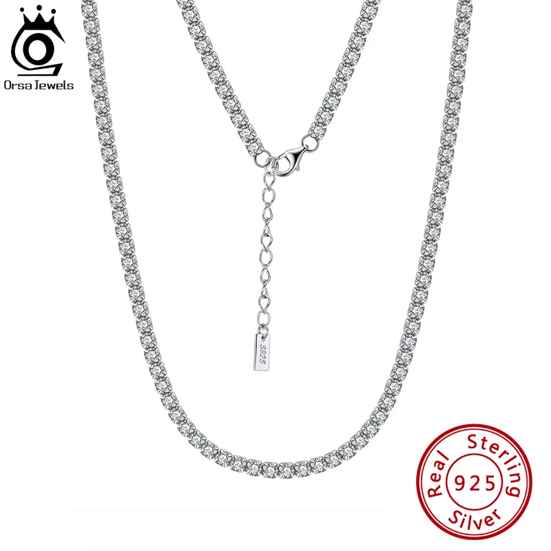 ORSA JEWELS, твердая цепочка из стерлингового серебра 925 пробы для женщин и мужчин, цепочка для тенниса, круглая цепочка с кубическим цирконием, цепочка для тенниса, ожерелье, ювелирное изделие, SC45