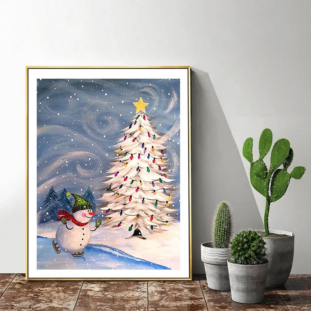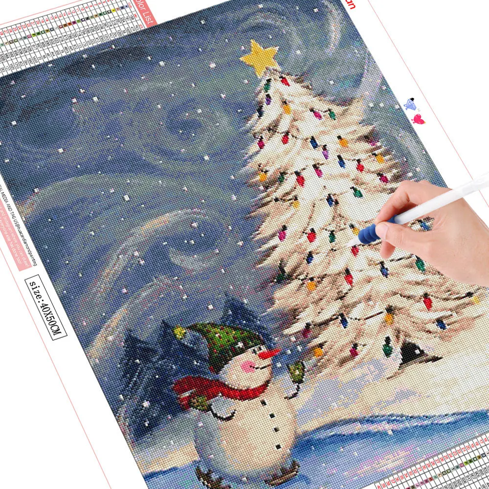 HUACAN Алмазная картина Снеговик полный квадрат Новое поступление Рождественская Алмазная вышивка Бриллиантовая мозаика дерево зимний Декор для дома