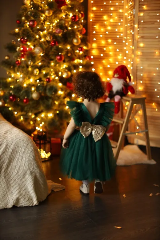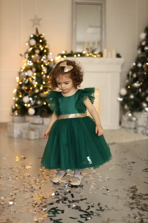 Рождественское платье для маленьких девочек, новинка 2021, вечерние чатое кружевное платье принцессы для дня рождения и причастия, с блестками, платье для рождественского праздника, бальное платье