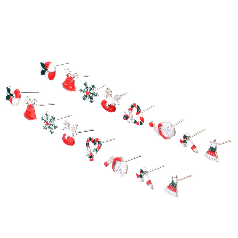 8 пар, серьги-гвоздики, ювелирный набор аксессуаров, милый Санта-Кл...