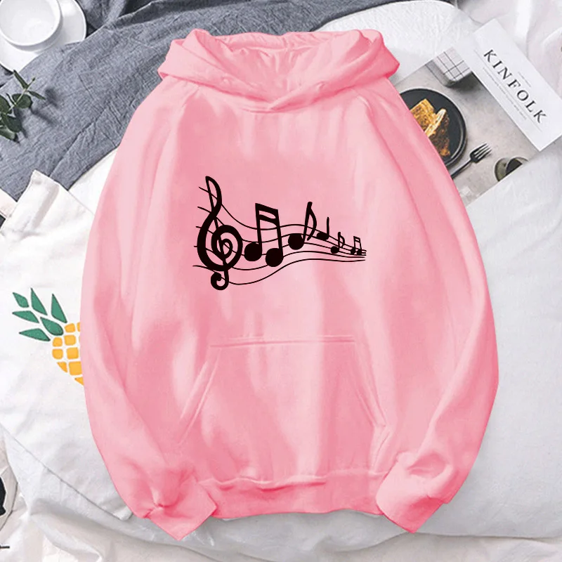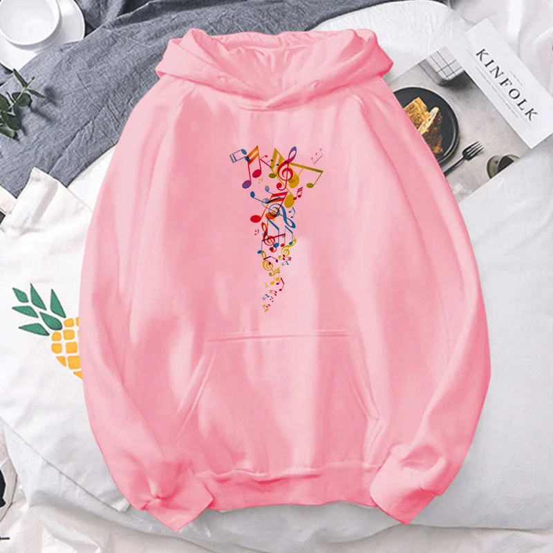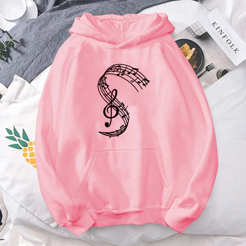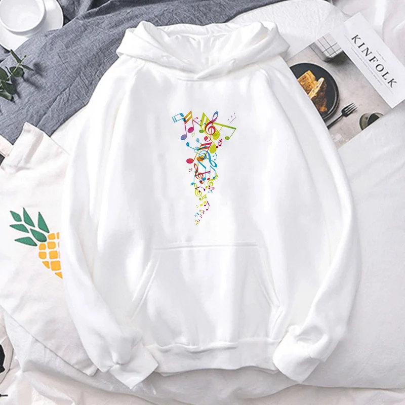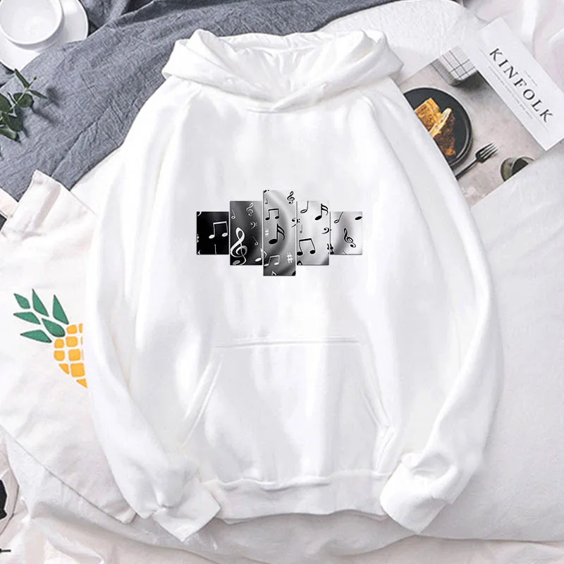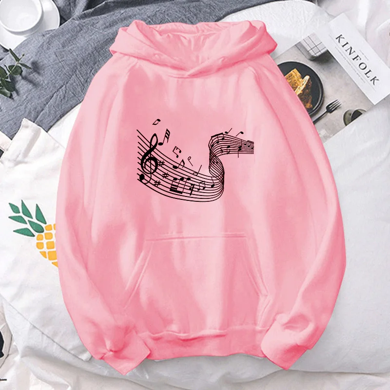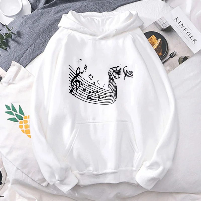 Женская толстовка с капюшоном, однотонная, с длинным рукавом, с принтом музыкальных нот, Осень-зима