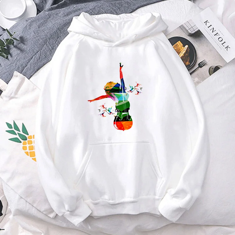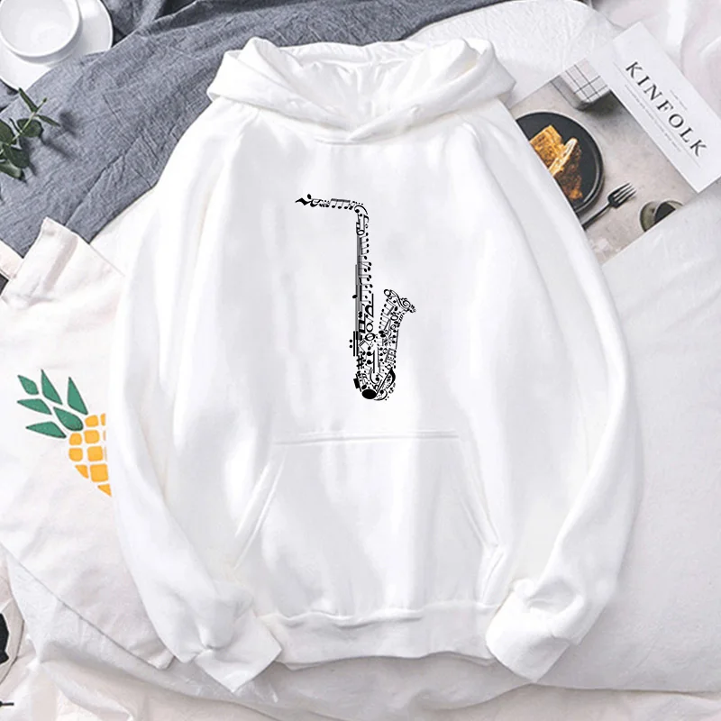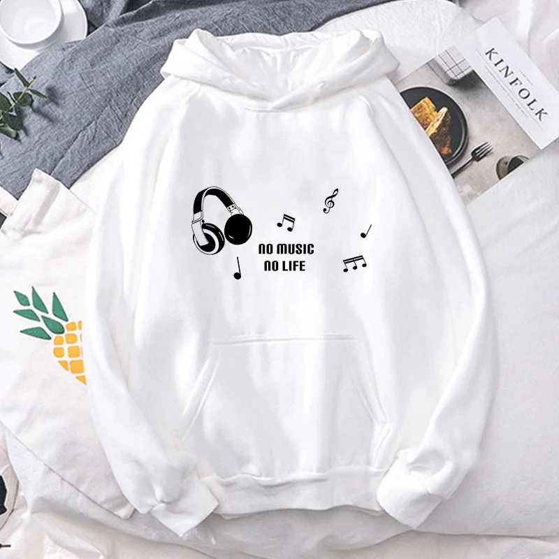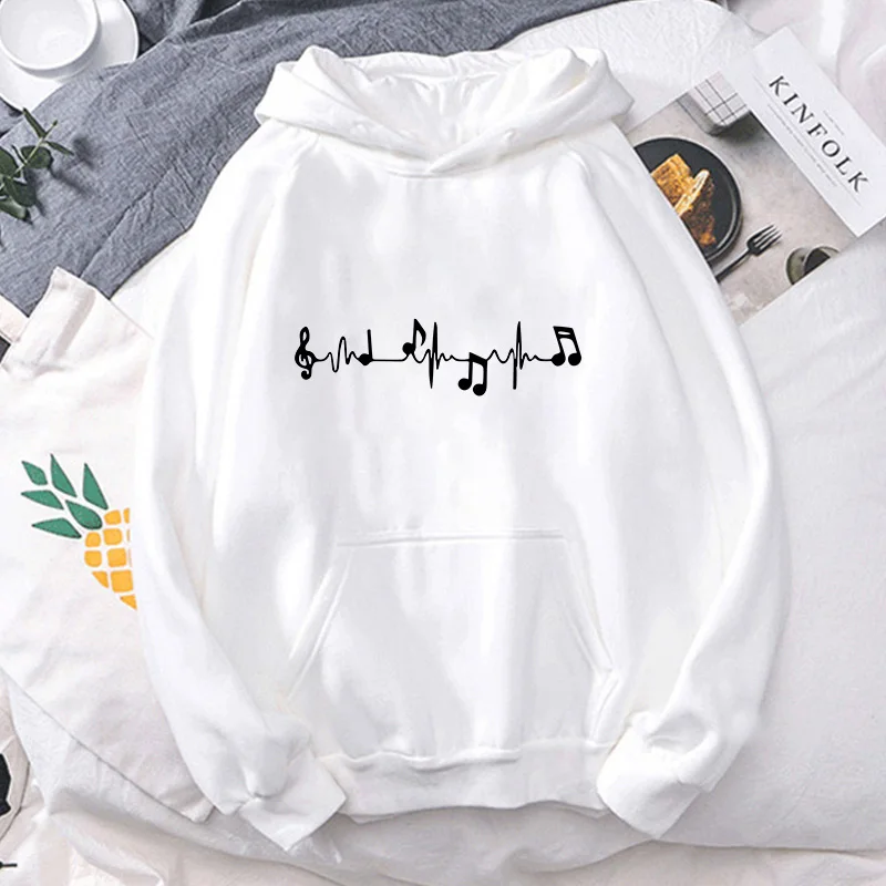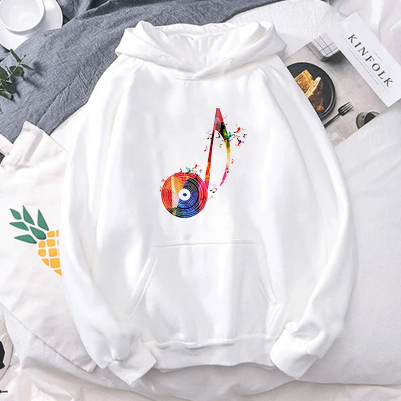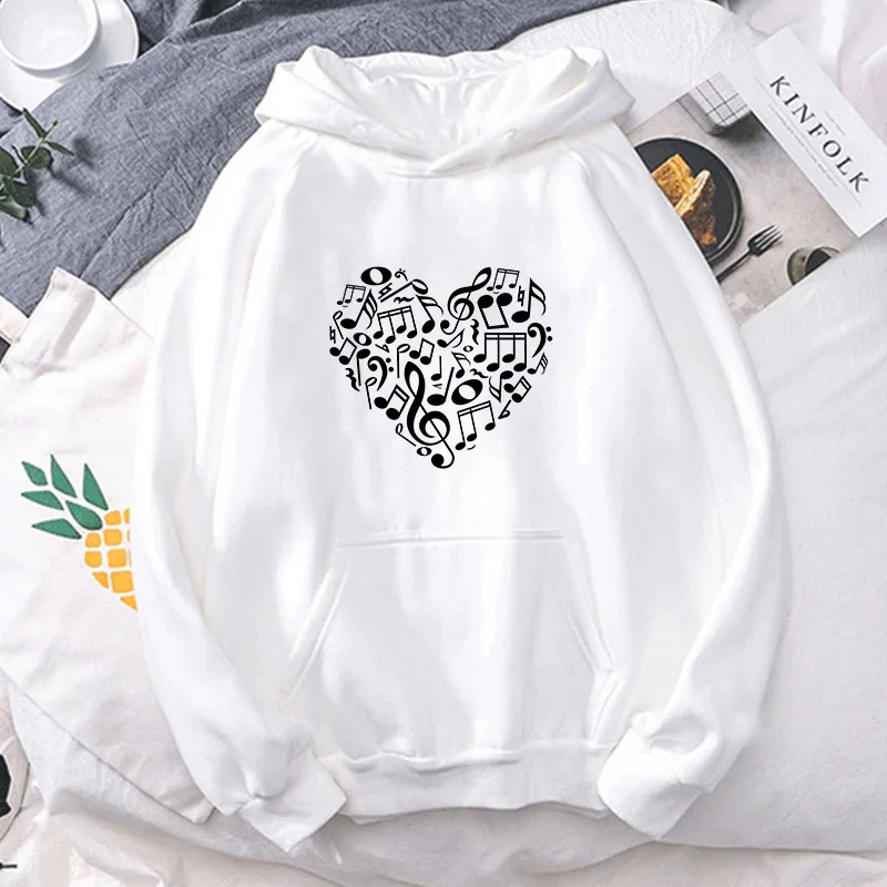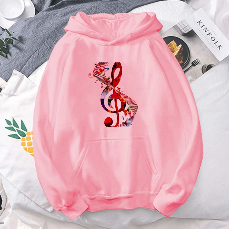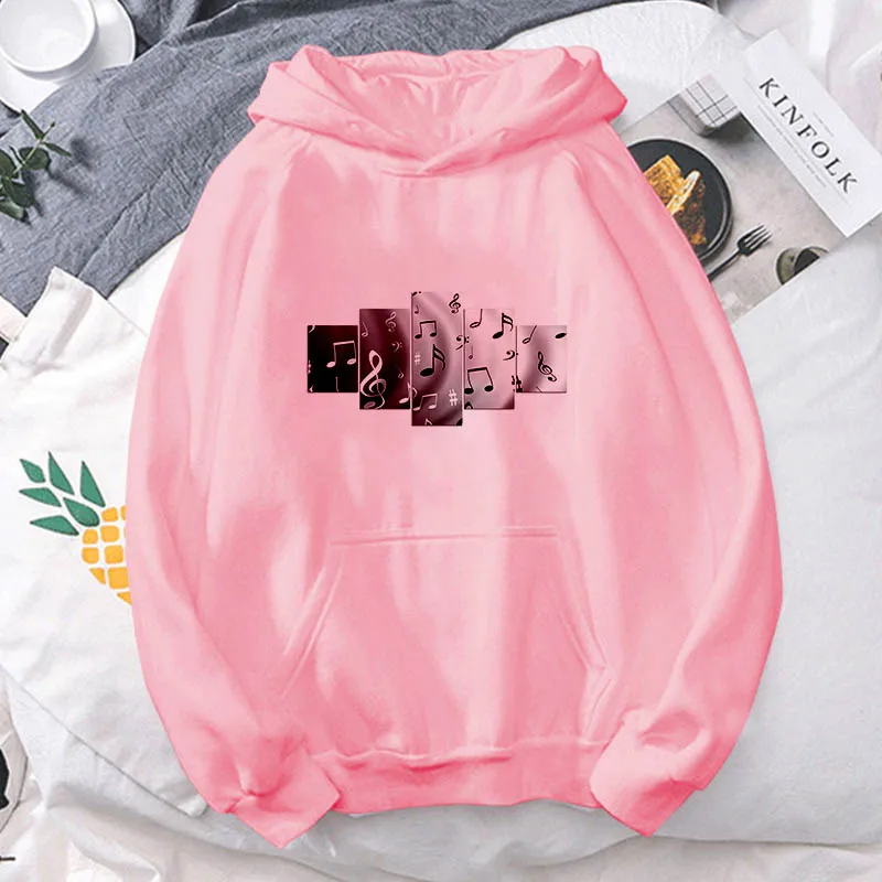 Женская толстовка с капюшоном, однотонная, с длинным рукавом, с принтом музыкальных нот, Осень-зима