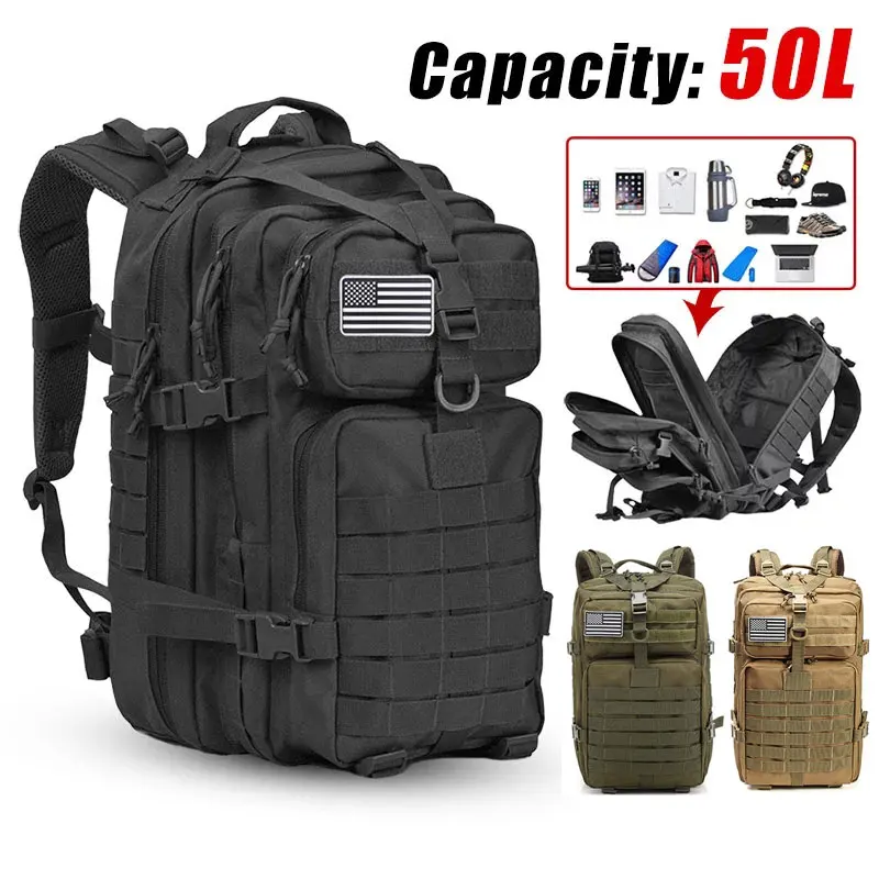Водонепроницаемый нейлоновый рюкзак для походов рыбалки охоты объемом 50 л 1000D, уличные военные рюкзаки, тактические Спортивные походные мужские рюкзаки