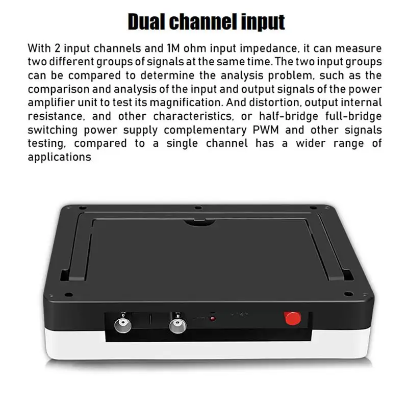 100 МГц аналоговая полоса пропускания @ 1GSa/s частота дискретизации (1X = 5 МГц, 10X = 100 МГц).Полностью подходит для 7 дюймов 800x480 цветной TFT LCD с яркими цветами и высокой контрастностью.Емкостный сенсорный экран, такой же, как и Сенсорный режим современного мобильного телефона для iPad, не является резистивным сенсорным экраном с древней операцией ногтей.Диапазон высокого напряжения, 1x может измерить 0 ~ 40 В, 10x может измерить 0 ~ 400 В, 100x может измерить 0 ~ 4000 в.