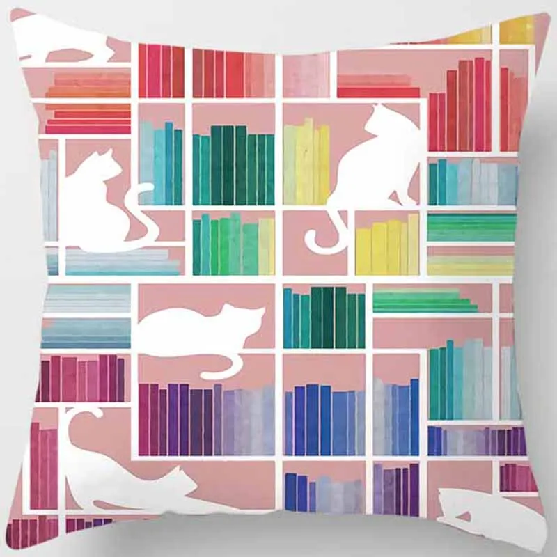 Квадратная наволочка с принтом кошки и книжной полки, используется для украшения дома, искусственная Обложка 45 см * 45 см