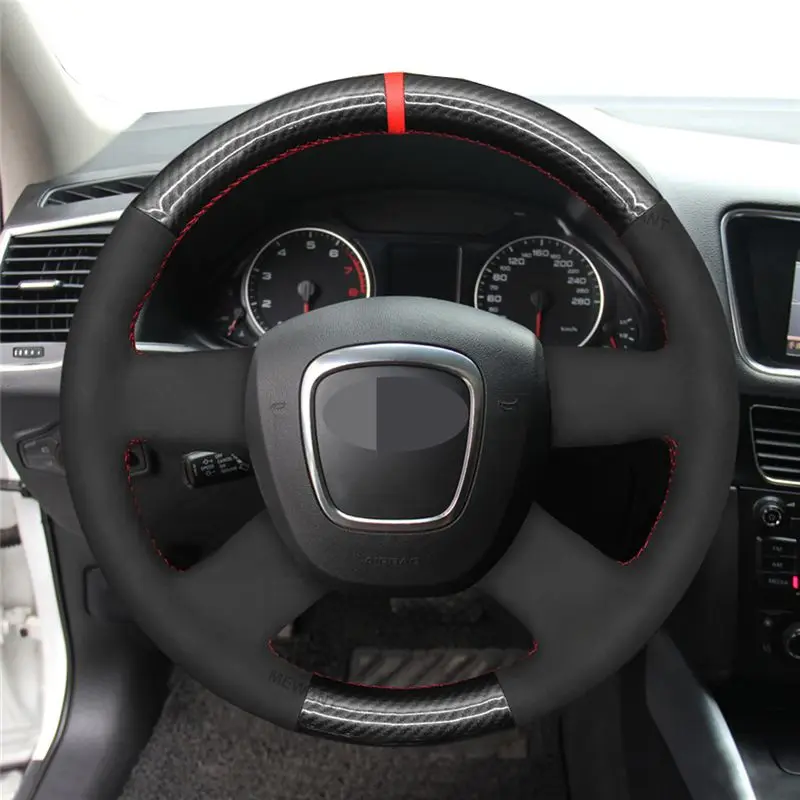 Для Audi A3 8P Sportback A4 B8 A4 B7 A6 C6 4 спицы 2003 2004-2010 2011 2012 черный чехол на руль из углеродного волокна