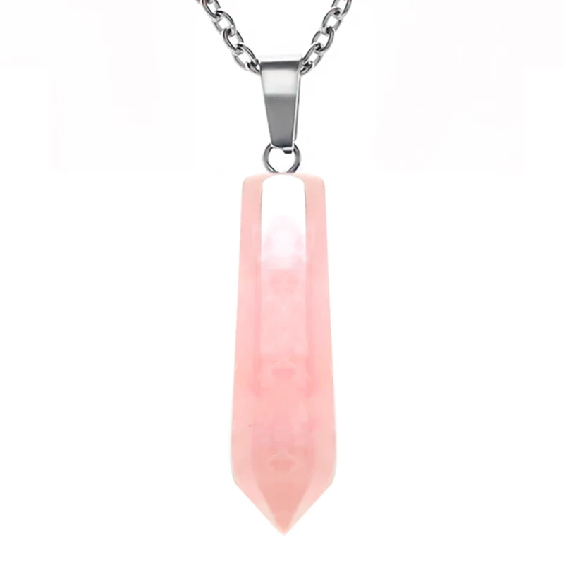 Милое ожерелье с подвеской из розового кварца для женщин, корейская бижутерия, цепочка из нержавеющей стали, геометрическое эффектное ожерелье из натурального камня, подарок
