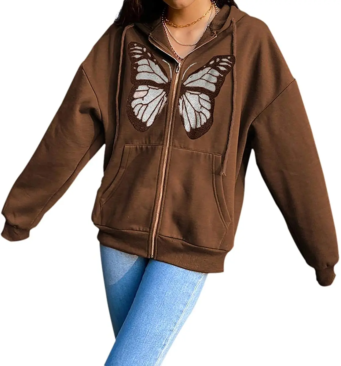 Толстовки Y2K большого размера, на молнии, с изображением бабочек, ...
