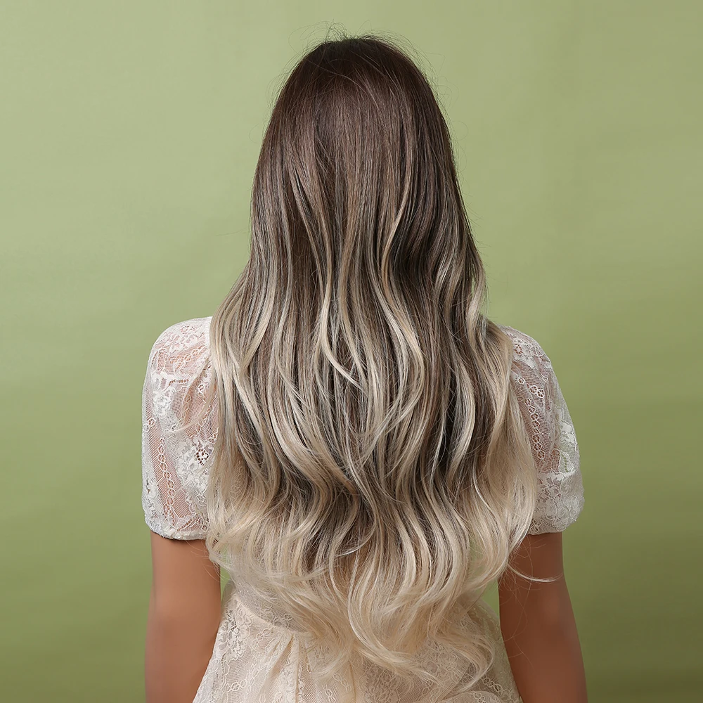 Длинные волнистые парики блонд Омбре, парики с темными корнями сред...
