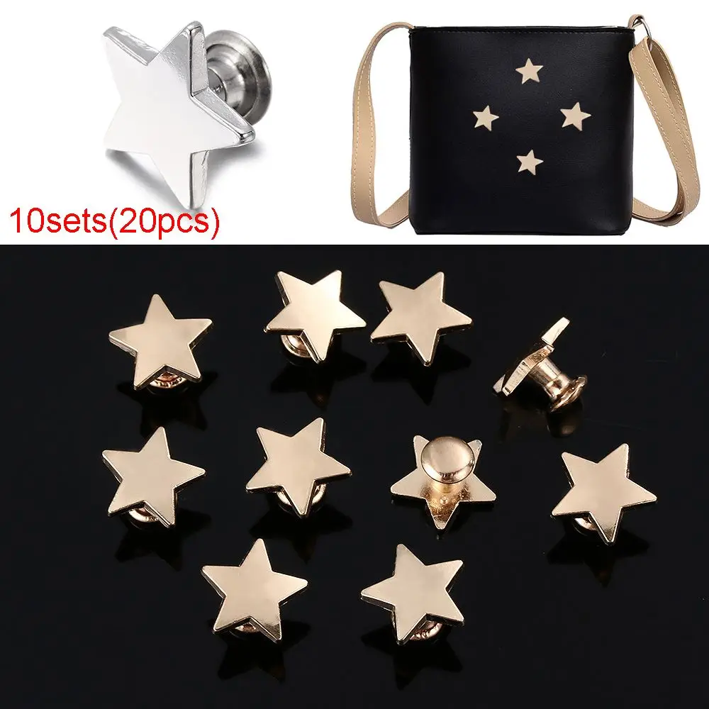 10 комплектов заклепок со звездами для самостоятельного изготовления сумок для одежды, обуви, декоративных принадлежностей для одежды, стеклянных сверл, кнопок для ногтей, швейных аксессуаров