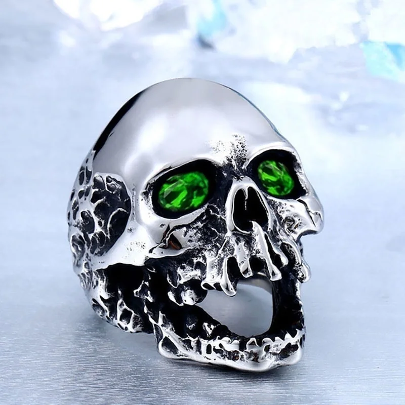Мужское кольцо с зелёным кристаллом, в богемном стиле