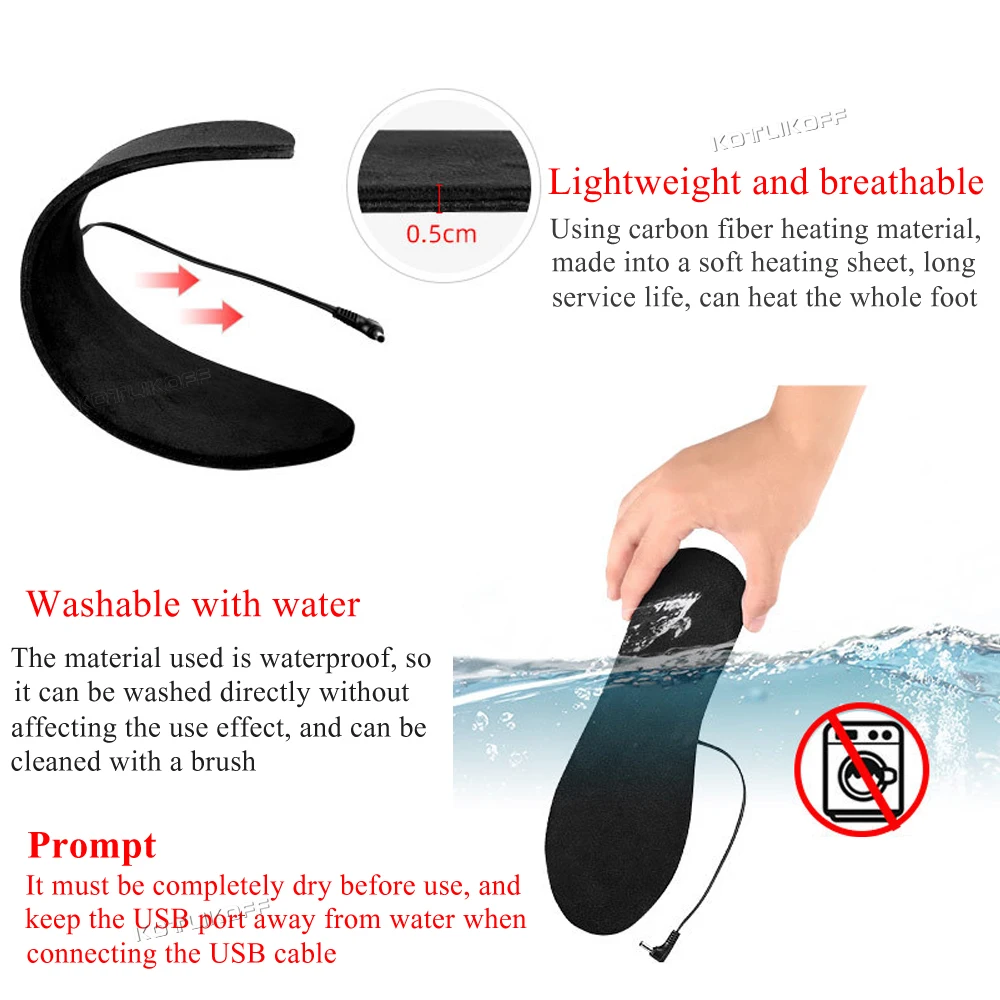 Стельки для обуви с подогревом от USB, стельки с электрическим подогревом для ног, моющиеся, подогревающие стельки для носков, для зимних видов спорта на открытом воздухе