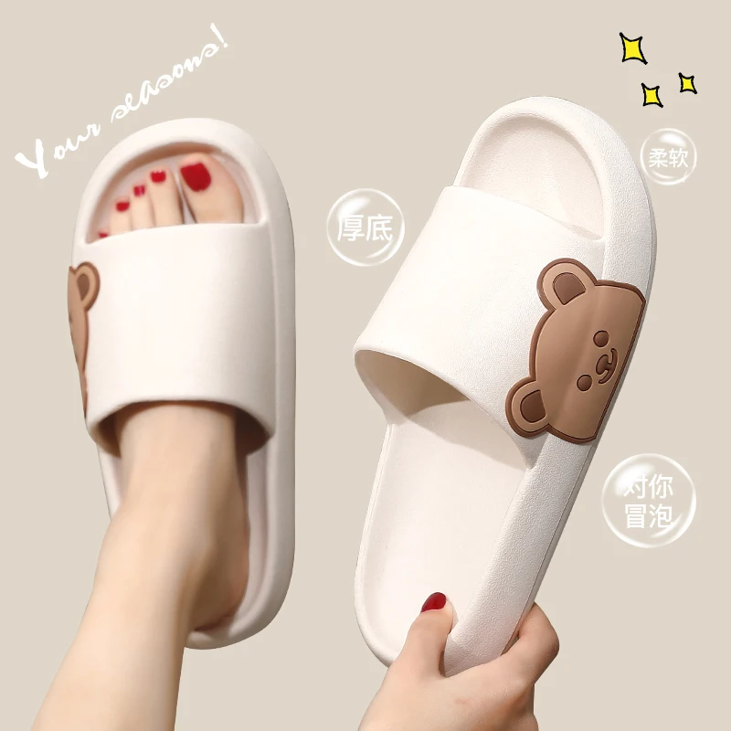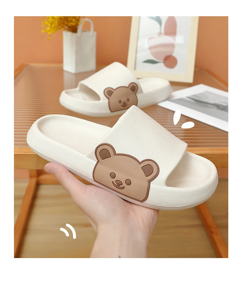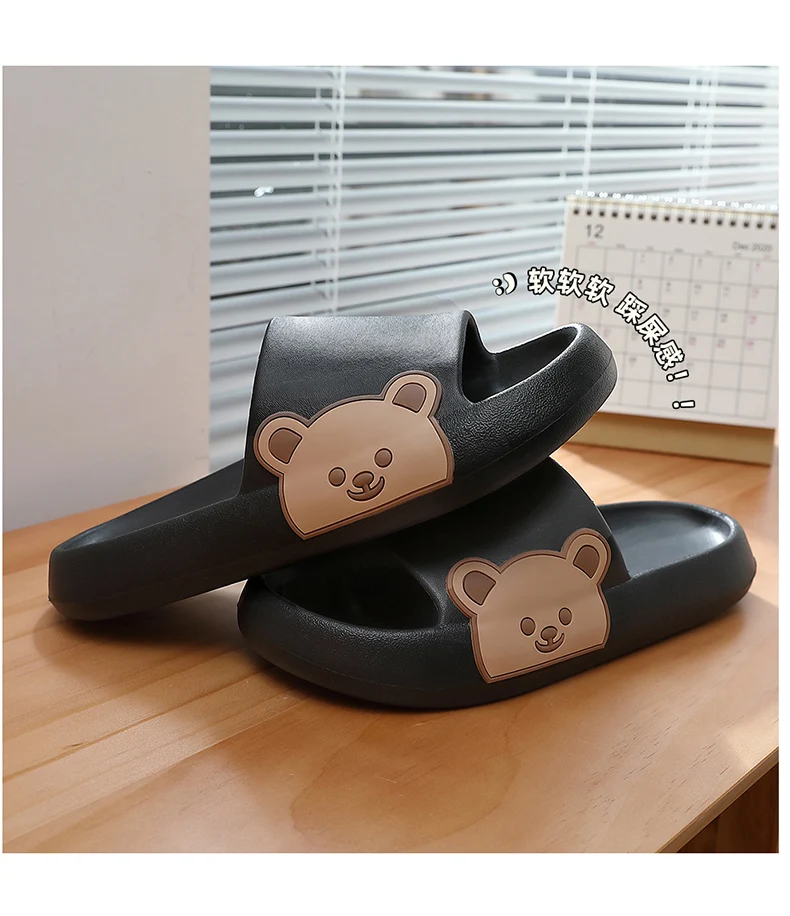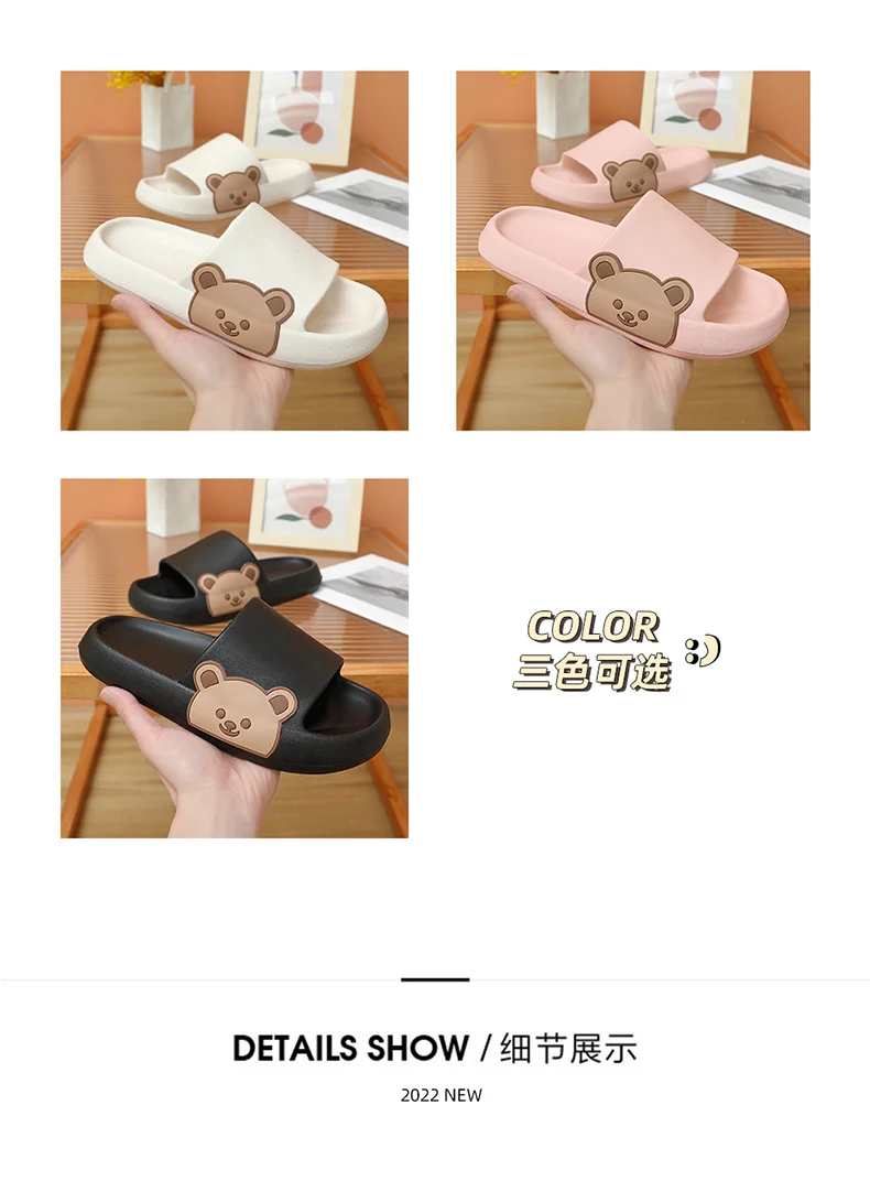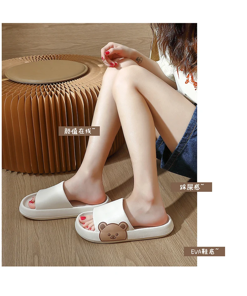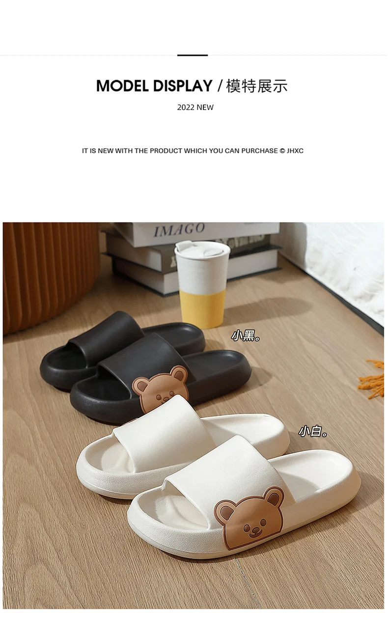 Шлепанцы мужские Нескользящие, пляжные сандалии для пар, шлепанцы с мультяшным медведем, толстая подошва, для ванной комнаты, лето 2022