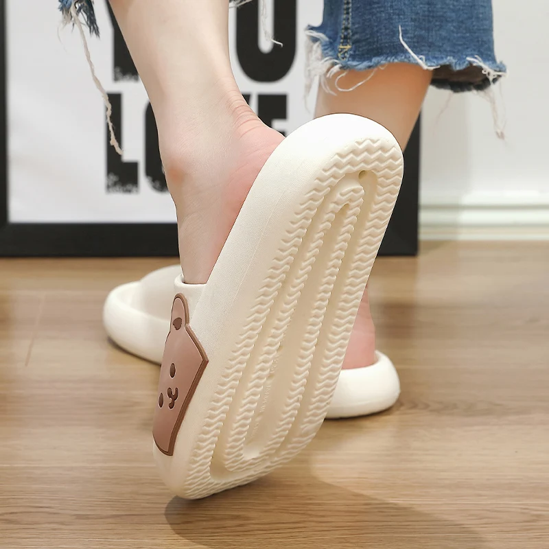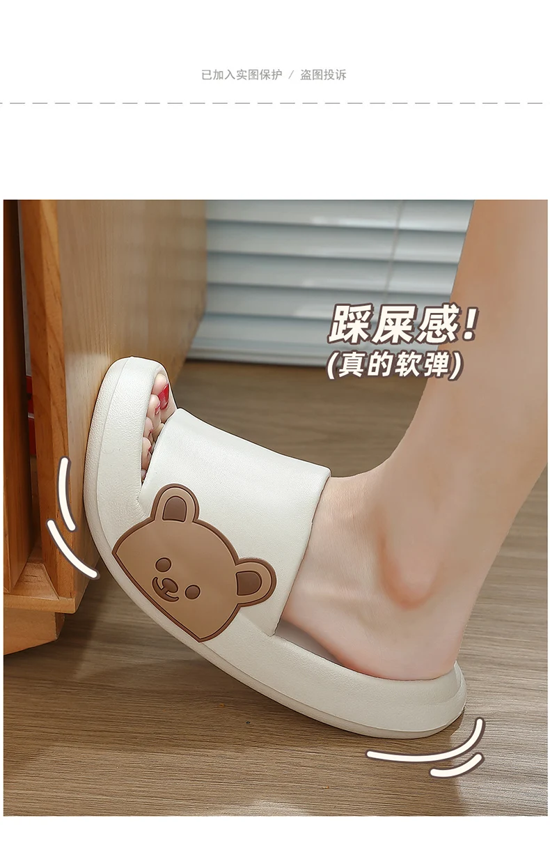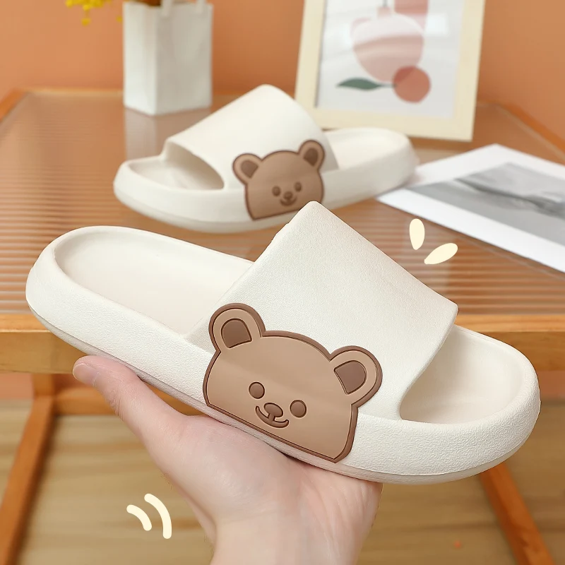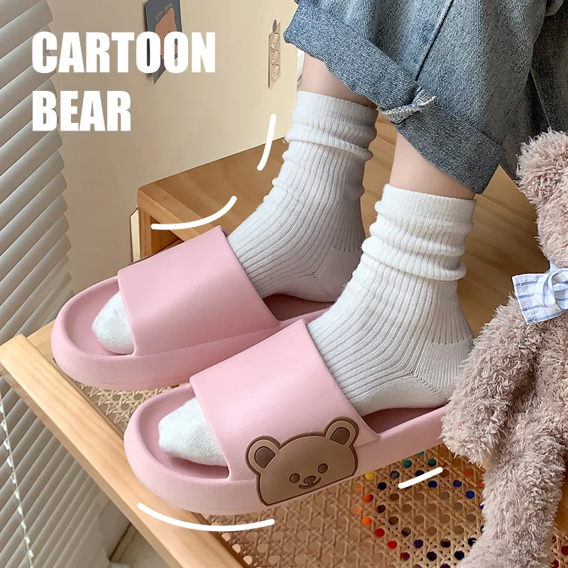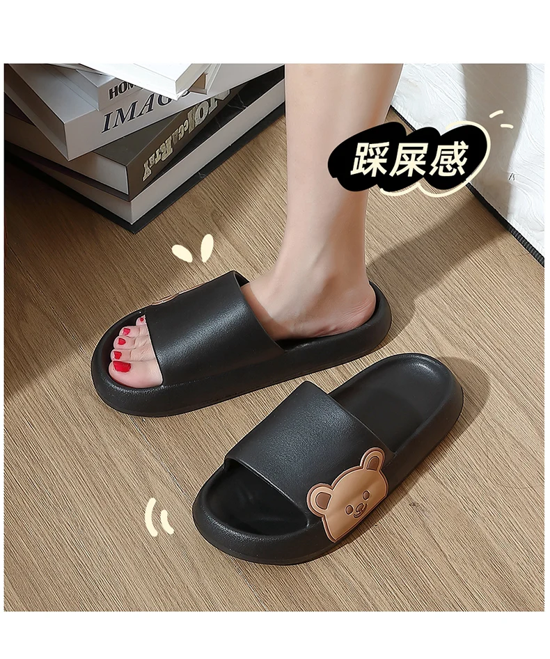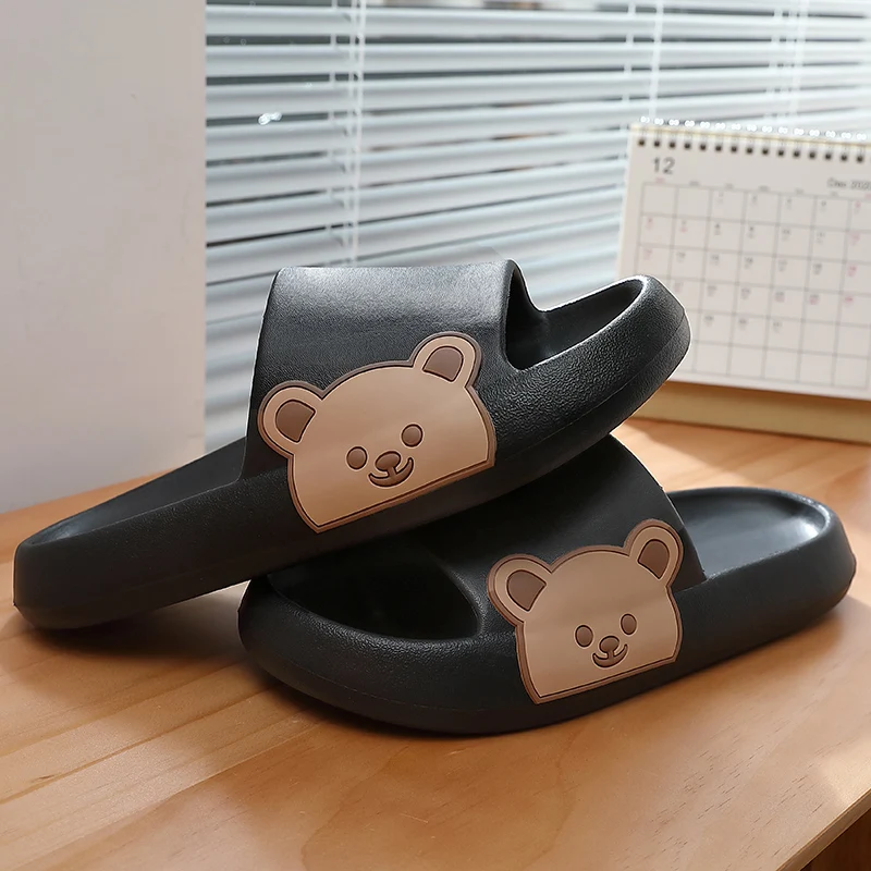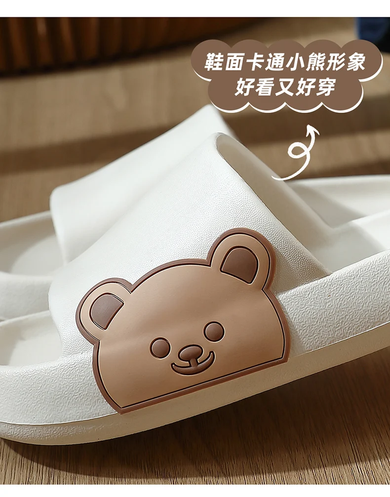 Шлепанцы мужские Нескользящие, пляжные сандалии для пар, шлепанцы с мультяшным медведем, толстая подошва, для ванной комнаты, лето 2022