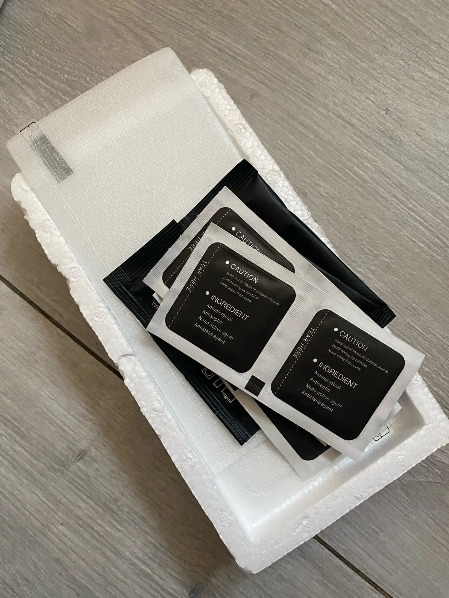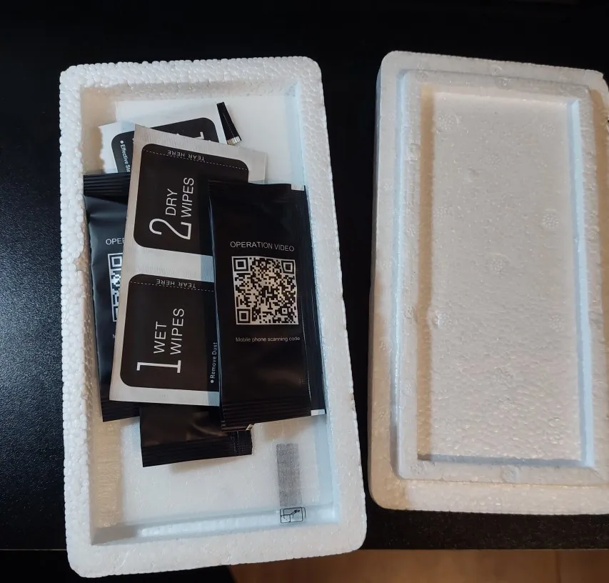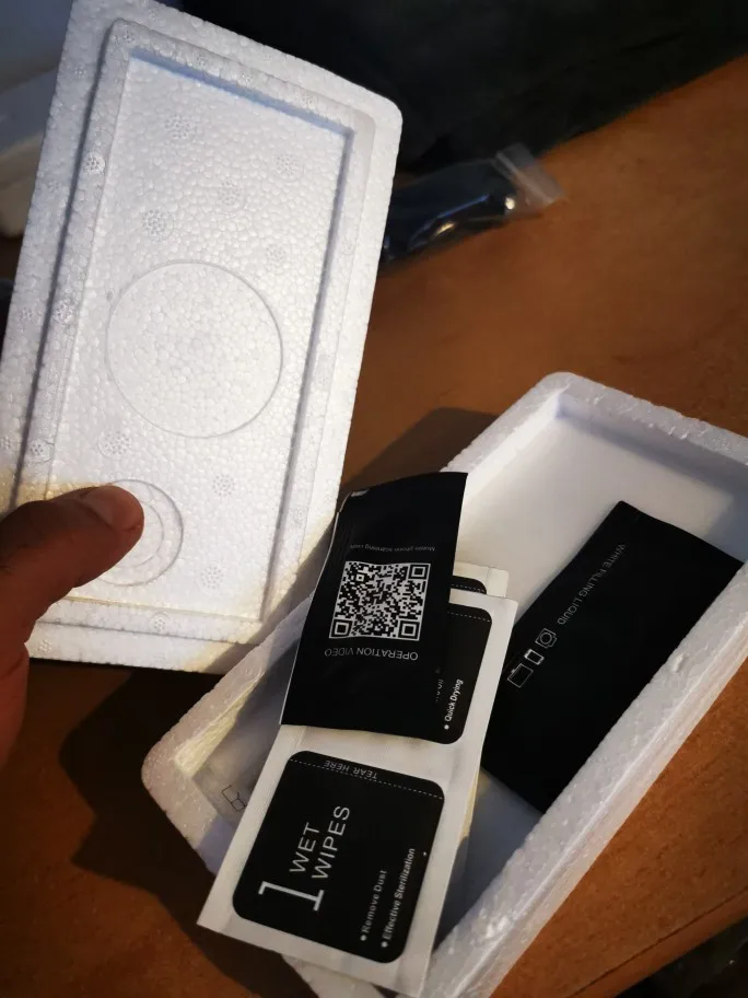 Упакованы в пенопластовый кейс, в комплекте есть салфетки и жидкость для подготовки экрана к наклейке стекла. Все цело, описанию соответствует.Спасибо продавцу! Рекомендую!