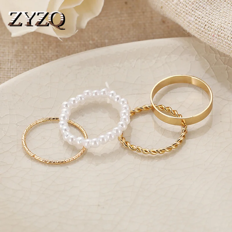 ZYZQ ins Новинка 4 шт. простое индивидуальное кольцо для женщин и девушек Творческий темпераментный комплект колец ювелирные изделия для свадьбы вечеринки юбилея