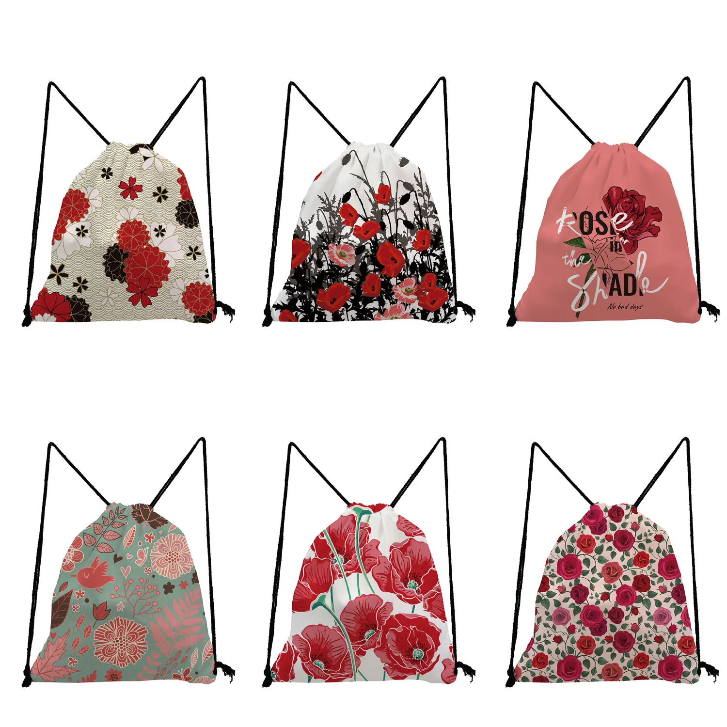 Рюкзак с цветочным принтом, модные красивые сумки на шнурке, Экологичная сумка унисекс для хранения, женская школьная Повседневная сумка для книг