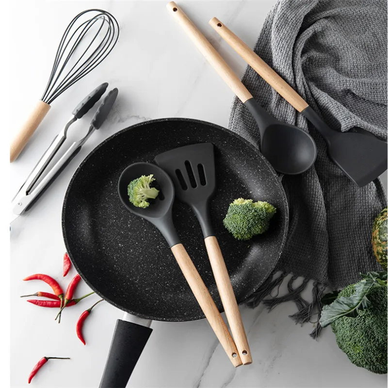 Набор Кухонной силиконовой посуды, 1 набор, антипригарная посуда с деревянной ручкой, легко Лопата для чистки ложка, инструменты для приготовления супа