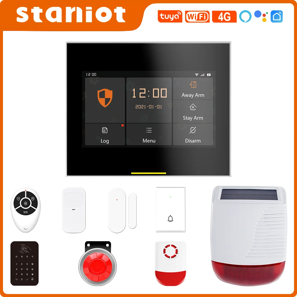 Staniot GSM домашняя охранная сигнализация 4G беспроводной Wi-Fi Tuya Smart Life приложение 4,3-дюймовый экран дисплея с полным сенсорным управлением,Горячие продажи в России, поддержка 10 языков и голосов