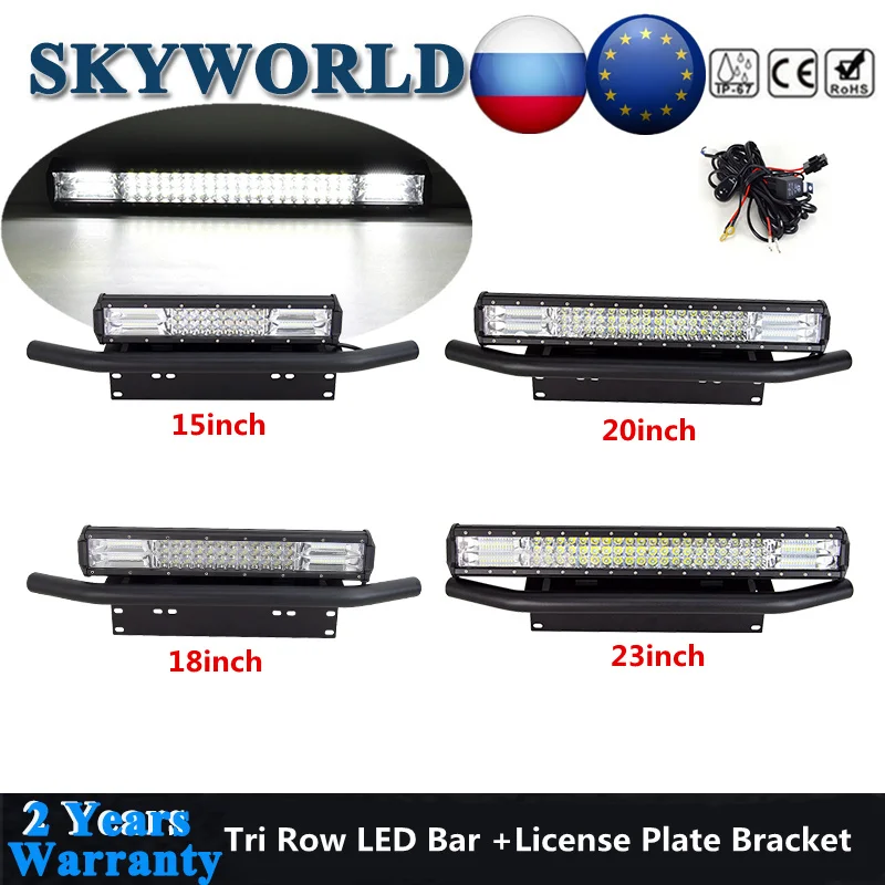 Кронштейн для номерного знака переднего бампера + 3-рядная светодиодная световая панель 15, 18, 20, 23 дюйма для внедорожников, для джипов, грузовиков, 4x4, внедорожников