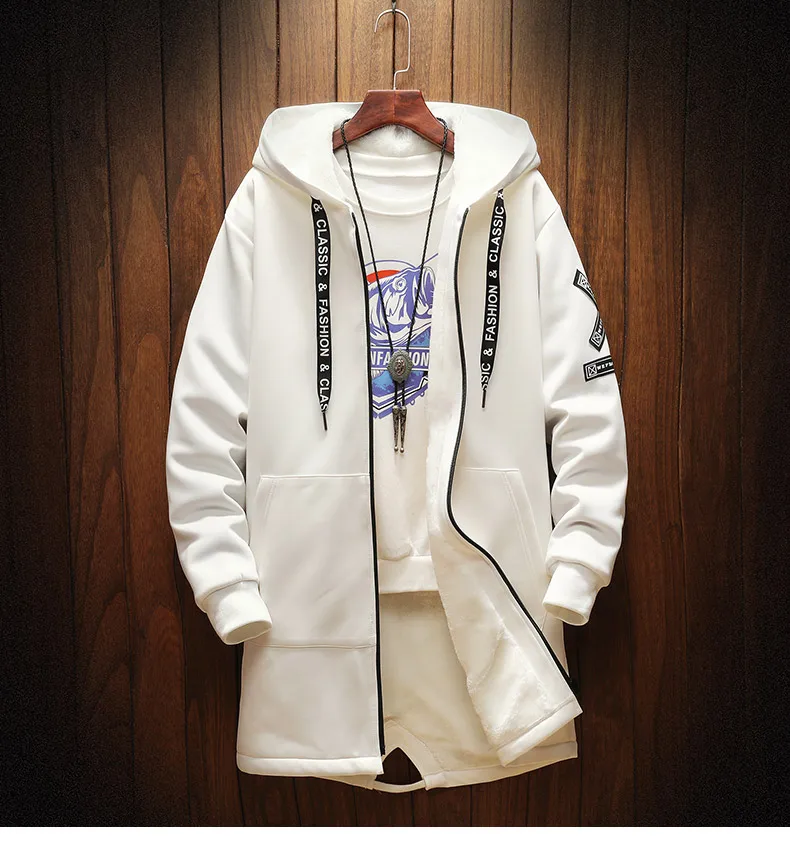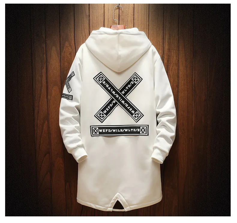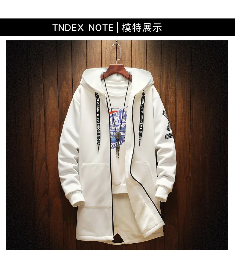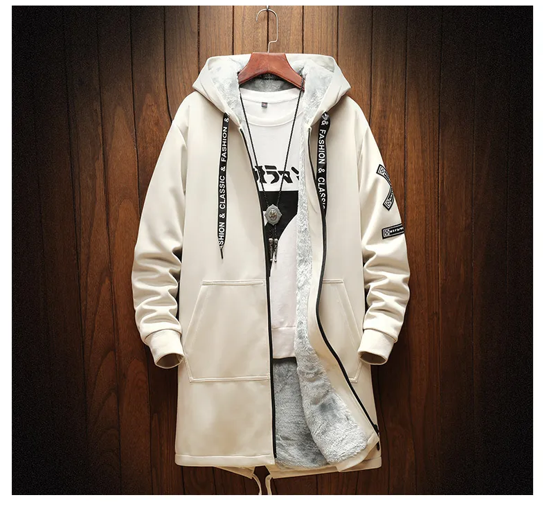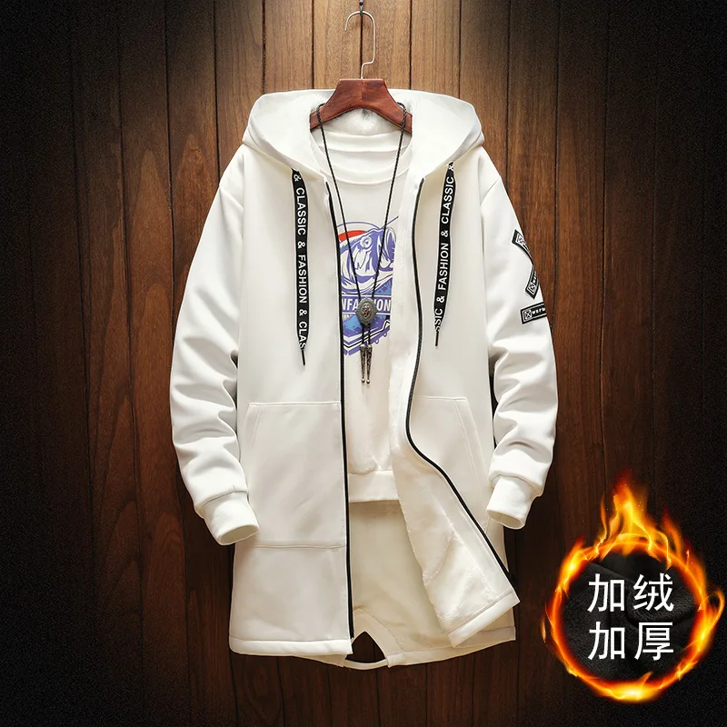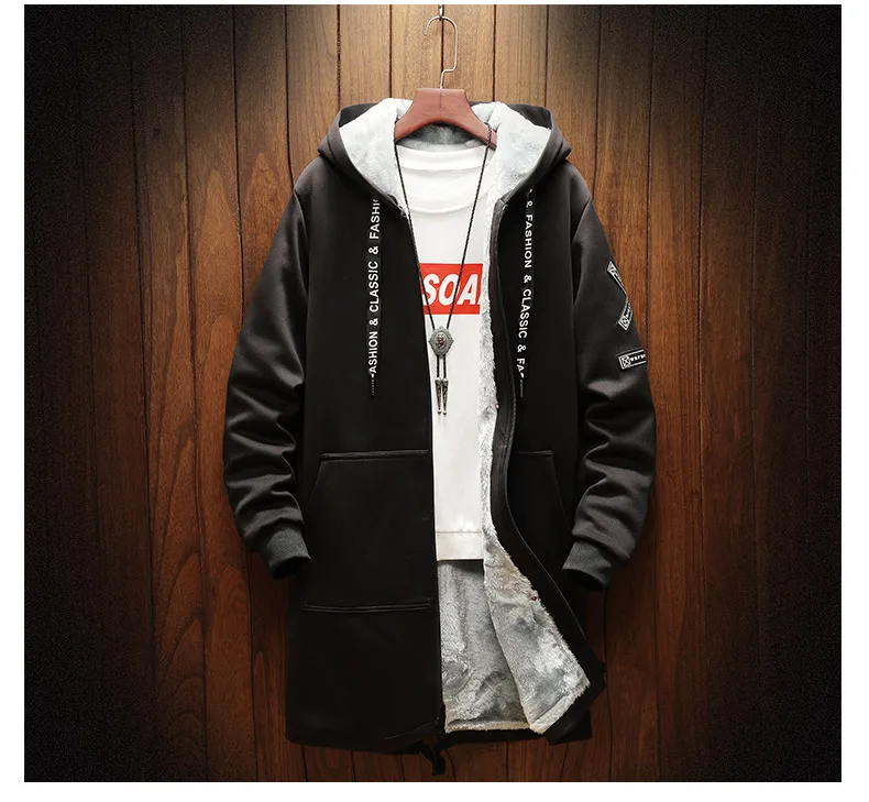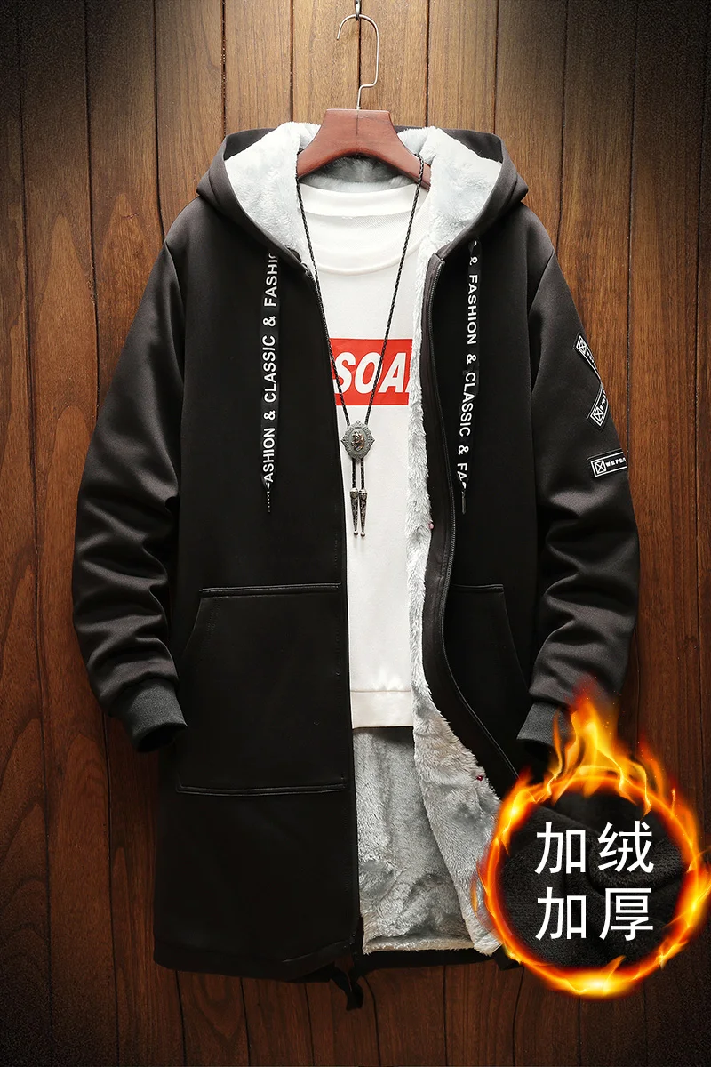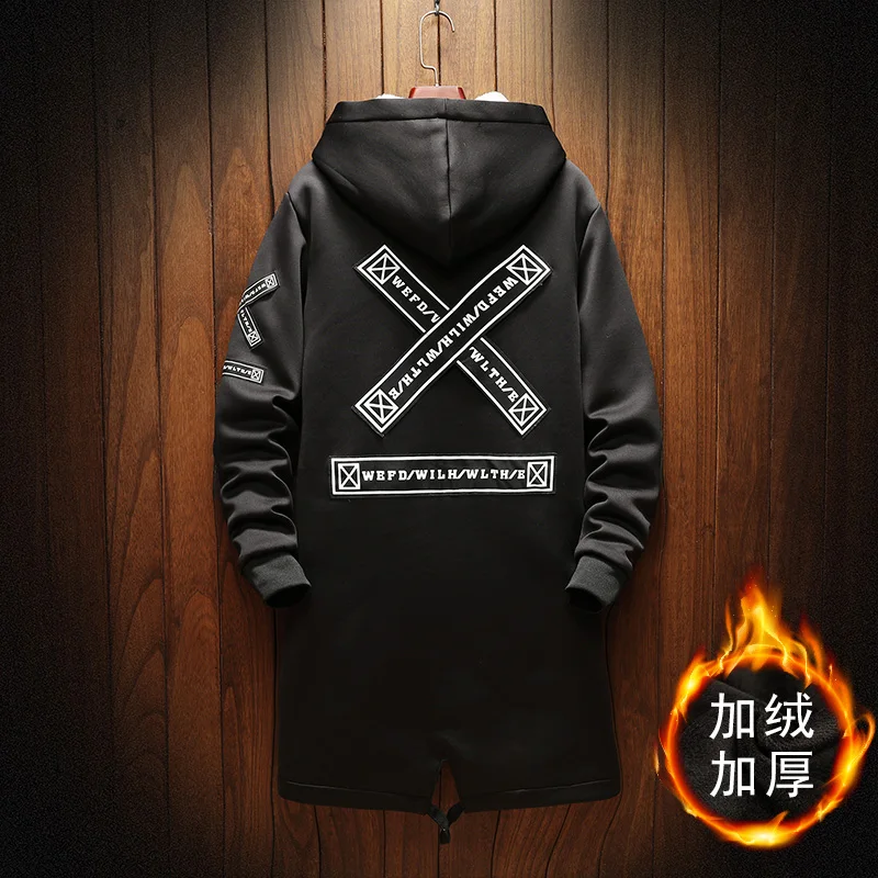 Осенне-зимняя мужская Толстая ветровка с флисовой подкладкой в стиле хип-хоп, мужская повседневная куртка с принтом, тренчкот средней длины, мужская модель 2 цветов