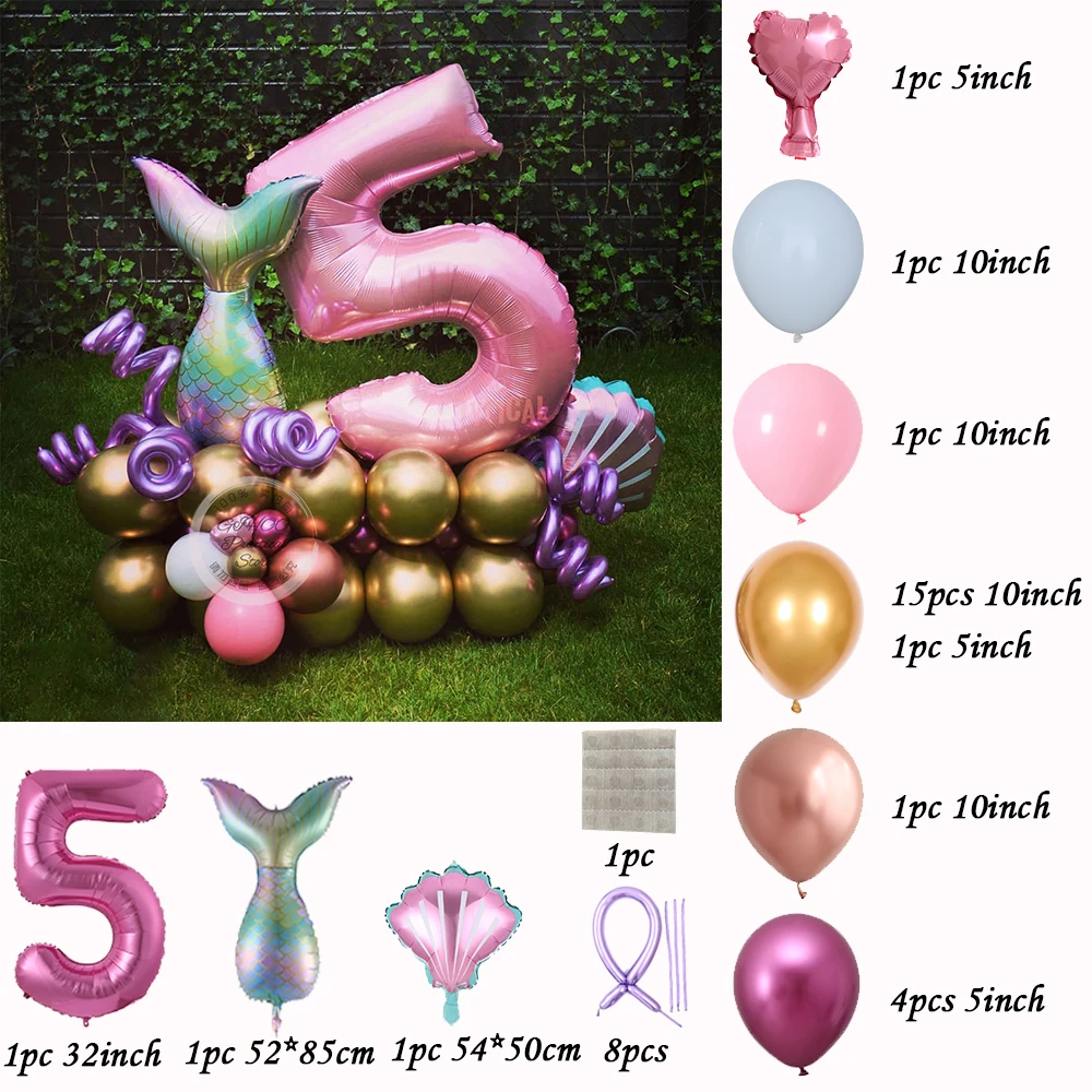 36 шт хвост русалки воздушные шары набор для арки хромированные золотые латексные глобусы для дня рождения украшения 32 дюйма номер воздушный шар из фольги подарок для девочки